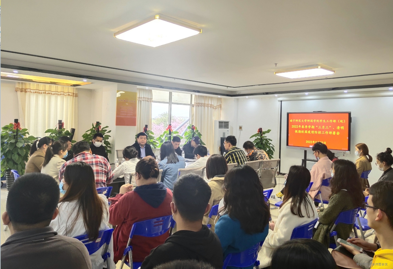 为做好2022年春季学期“壮族三月三”和清明节假期校园疫情防控工作,保障全院师生安全,3月30日下午,我院在行政综合楼2楼202会议室召开“壮族三月三”和清明节假期校园疫情防控工作部署会。学院常务副院长李剑喜,学工处、后勤处、保卫处负责人,学工系统全体人员及物业公司代表参加会议。会议由学工处处长叶栋主持。