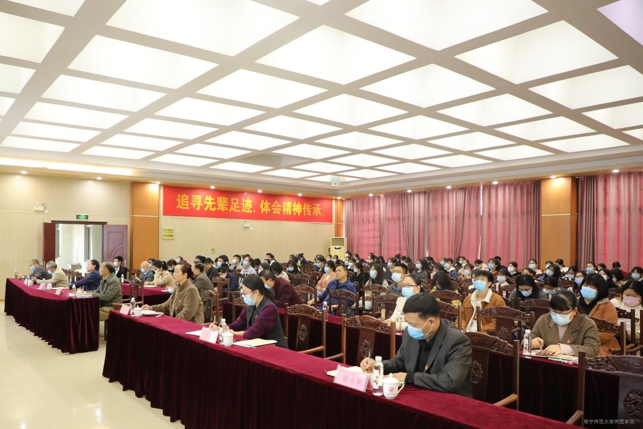 12月9日下午,我院在行政综合楼12楼第二报告厅开展学习贯彻党的十九届六中全会精神专题宣讲活动。自治区党委教育工委特聘专家教授、广西医科大学马克思主义学院院长秦桂秀应邀主讲。学院院长李珏,副院长庞俊、李德正、谢永新,教学总督导卢敏秋,中层领导干部及各党总支书记,各党支部书记,党员师生代表参加宣讲活动。活动由梁春贤书记主持。