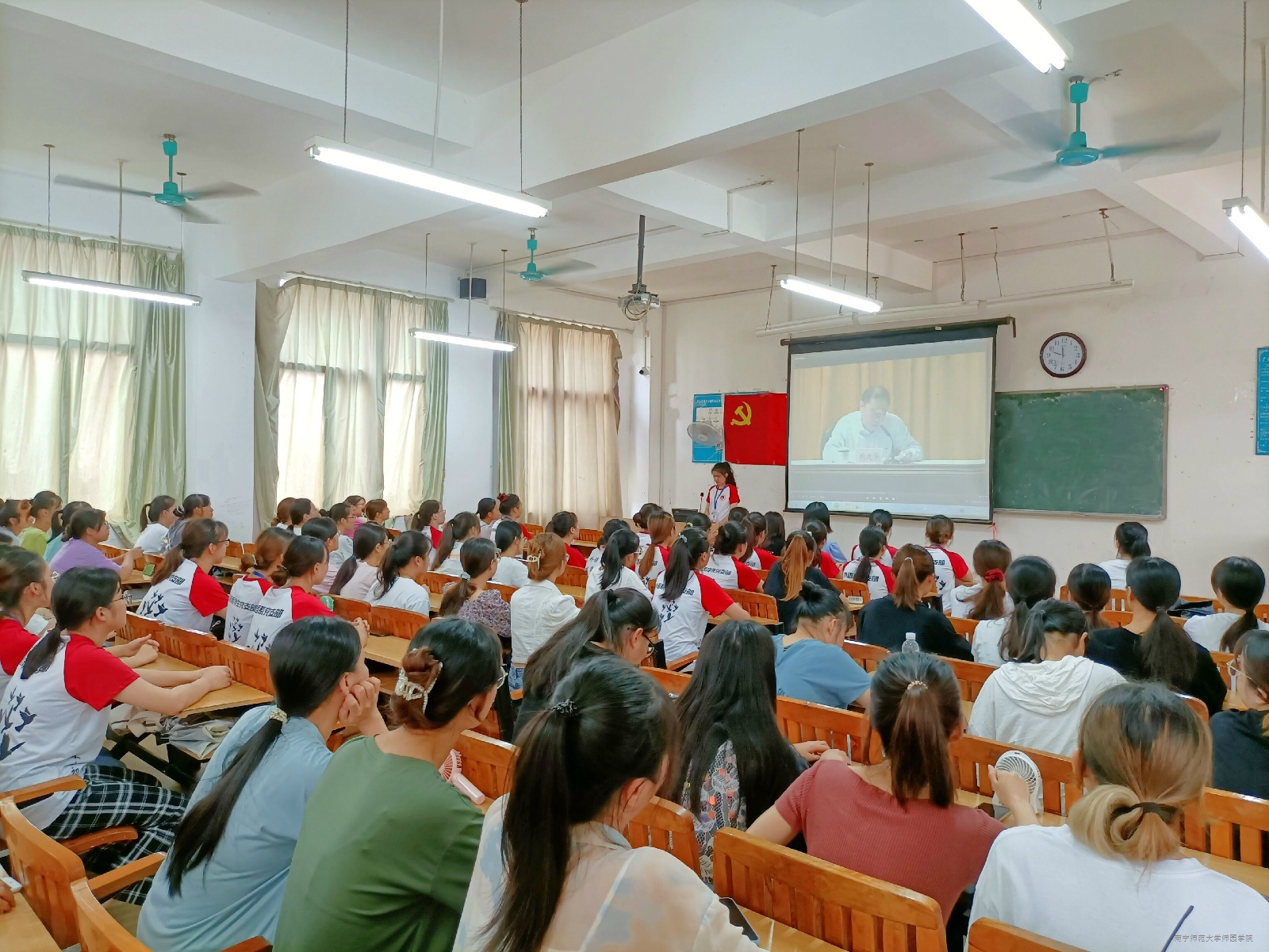 为深入推进党史学习教育,庆祝中国共产党成立100周年,7月5日,外语系学生党支部在教学楼3-202教室召开党史学习教育专题组织生活会。外语系学生党支部书记钟海兰及全体学生党员参加会议。