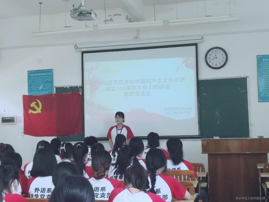会上,外语系党支部全体党员共同学习了习近平在庆祝中国共产主义青年团成立100周年大会上的重要讲话精神,并就大会的内容与意义进行了交流学习。学生党员在分享中纷纷表示,青春孕育无限希望,青年创造美好明天,作为青年党员应该继续深化理论知识学习,发挥党员模范作用,从身边做起,联系群众,帮助同学,服务同学。