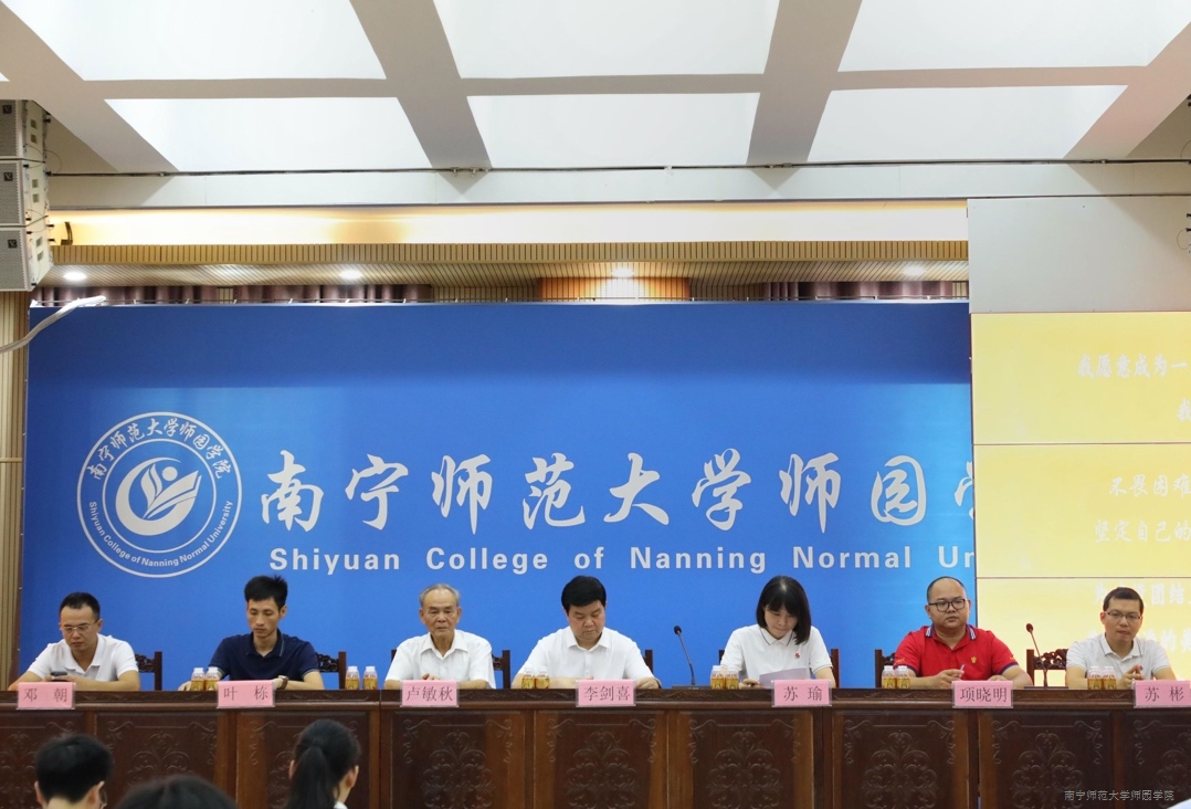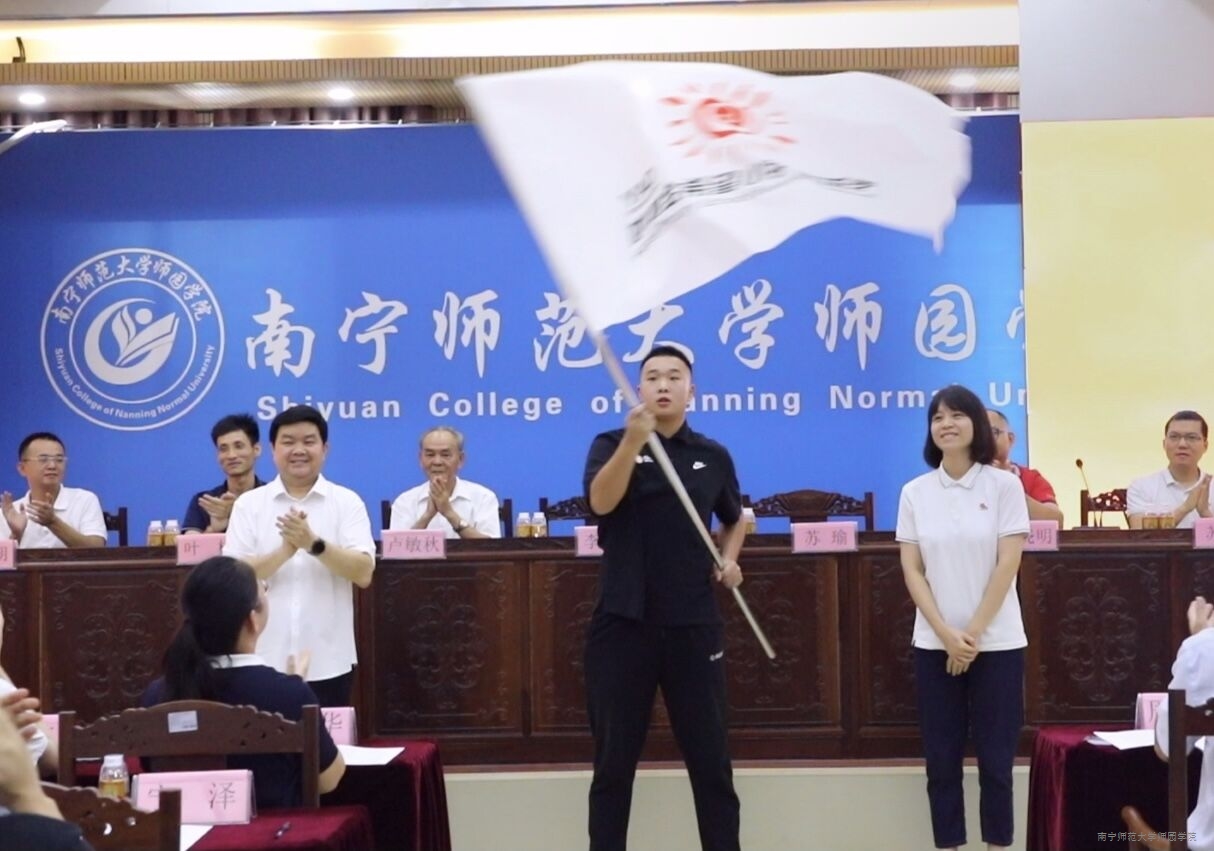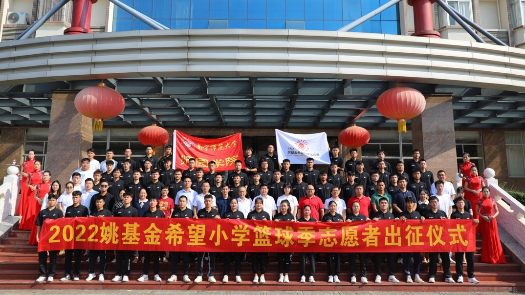 9月16日上午,我院在行政综合楼12楼第二报告厅隆重举行“2022姚基金希望小学篮球季”志愿者出征仪式。学院党委副书记、常务副院长李剑喜,学院副院长卢敏秋,广西青少年发展基金会秘书长苏瑜,广西青少年发展基金会项目部副部长苏彬,东鹏饮料集团广西大区推广经理项晓明,东鹏饮料集团南宁区域推广主管韦善胜,学院内各相关单位负责人以及工作领导小组成员,全体支教志愿者参加仪式。