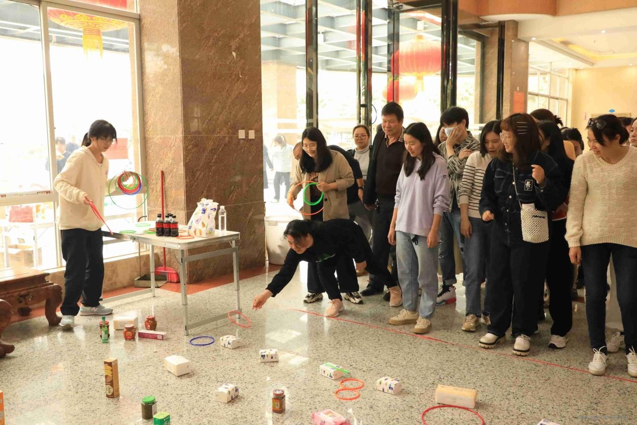 本次游园活动以趣味游戏的形式进行,包含拉力绳夺宝、夹乒乓球、套圈、挤眉弄眼吃饼干等共12个项目。在拉力绳夺宝游戏中,参赛老师们勇往直前,努力挣脱束缚夺取“宝藏”,最终赢得丰厚奖品;不顾表情管理的挤眉弄眼吃饼干游戏更是精彩纷呈,参赛老师各显其招,头和脸分别调动,每一帧表情都值得记录。活动现场,欢呼声、喝彩声不绝于耳,处处洋溢着浓浓的节日氛围,让学院全体教职工共度了一个充实、欢乐、美好的春日。