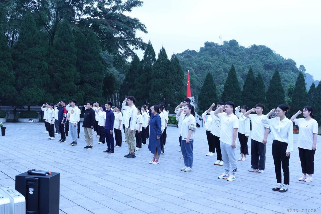 忠骨埋山河,英雄永不朽。为学习宣传贯彻党的二十大精神,进一步学习贯彻习近平总书记关于青年工作的重要思想,积极响应共青团中央关于清明节纪念缅怀英雄烈士的倡议,4月14日上午,学院党委副书记、常务副院长李剑喜带领学院学生工作处、团委相关负责人、教师代表及各年级学生干部代表赴西南边陲凭祥市匠止烈士陵园开展“缅怀英雄先烈·发扬爱国精神”爱国主义教育研学活动。