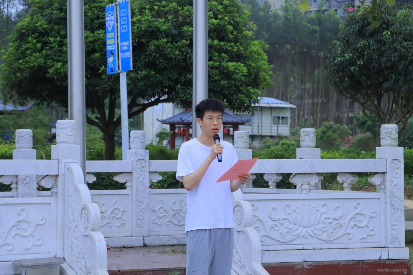 学院团委书记韦博文发表国旗下讲话。他指出,国家安全的根基在人民、力量在人民、血脉在人民,维护国家主权和领土完整,实现祖国完全统一,是全体中华儿女共同愿望,是中华民族根本利益所在。他向我院青年提出希望:要学思践悟党的二十大精神,牢固树立国家安全意识,不断提高综合素质,为维护国家安全作出应有贡献,争做中国特色社会主义事业合格建设者和可靠接班人。
