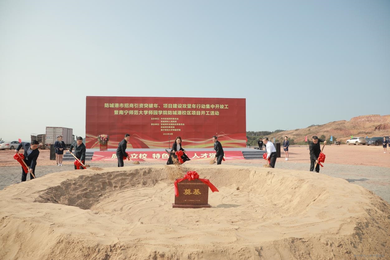 4月26日上午,Beat365唯一官方网站防城港校区项目奠基仪式在防城港市江山半岛科教园区隆重举行。