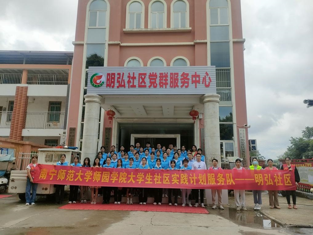 为深入开展学习贯彻习近平新时代中国特色社会主义思想主题教育,全面贯彻党的二十大精神,6月9日下午,根据共青团中央的总体部署及共青团广西区委的具体指导,学院团委结合院内实际情况,遴选出80名来自教育系33个团支部的志愿者与与明弘社区结对,前往明阳农场江垌分场、融创樾湖居小区开展“践行二十大,青春社区行”大学生社区实践计划。
