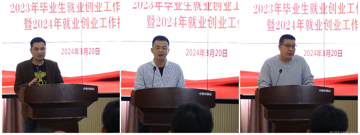 会上,梁春贤书记宣读学院2023年毕业生就业创业工作表彰文件,希望学院全体教职工以受表彰集体、个人为榜样扎实履行岗位工作职责,强化就业指导与帮扶,推动学院就业创业工作再上新台阶。随后,学院领导分别为2023年就业创业工作优秀集体、达标集体及就业创业优秀个人颁奖,并合影留念。外语系主任苏道佳、体育系主任邓朝与理工系学工组组长杨俊宇分别作就业创业工作优秀集体、优秀个人代表发言,分享毕业生就业创业工作经验。