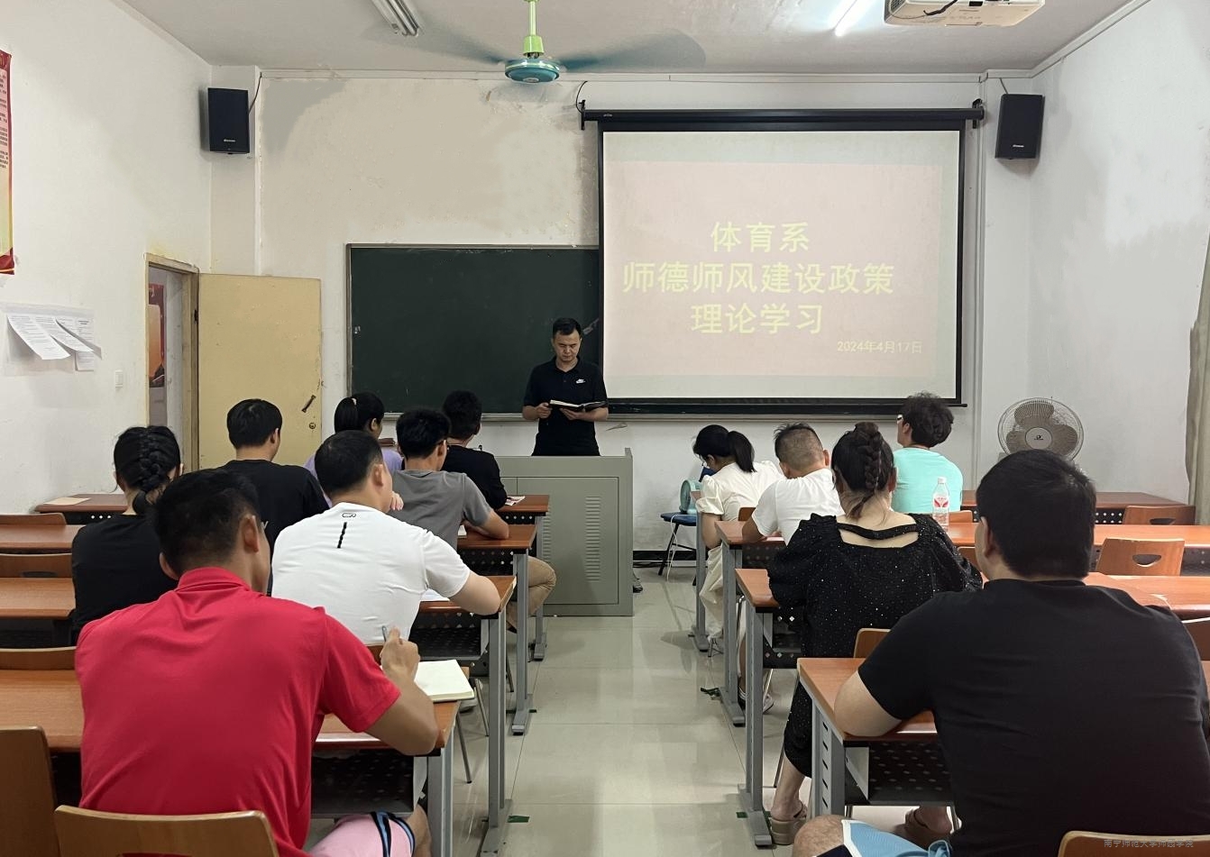为进一步筑牢体育系师德师风建设,提升教师的政治素养和职业道德水平,4月17日下午,体育系在文体楼204教室开展师德师风建设专题学习会。体育系全体教职工参加会议,会议由体育系主任邓朝主持。
