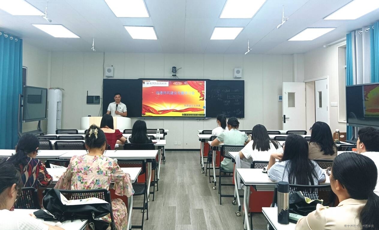 为进一步加强外语系师德师风建设,全面提升教职工思想政治素质和职业道德水平,4月30日下午,外语系在4-104智慧教室开展师德师风建设专题学习会。外语系全体教职工参加会议,会议由外语系主任苏道佳主持。