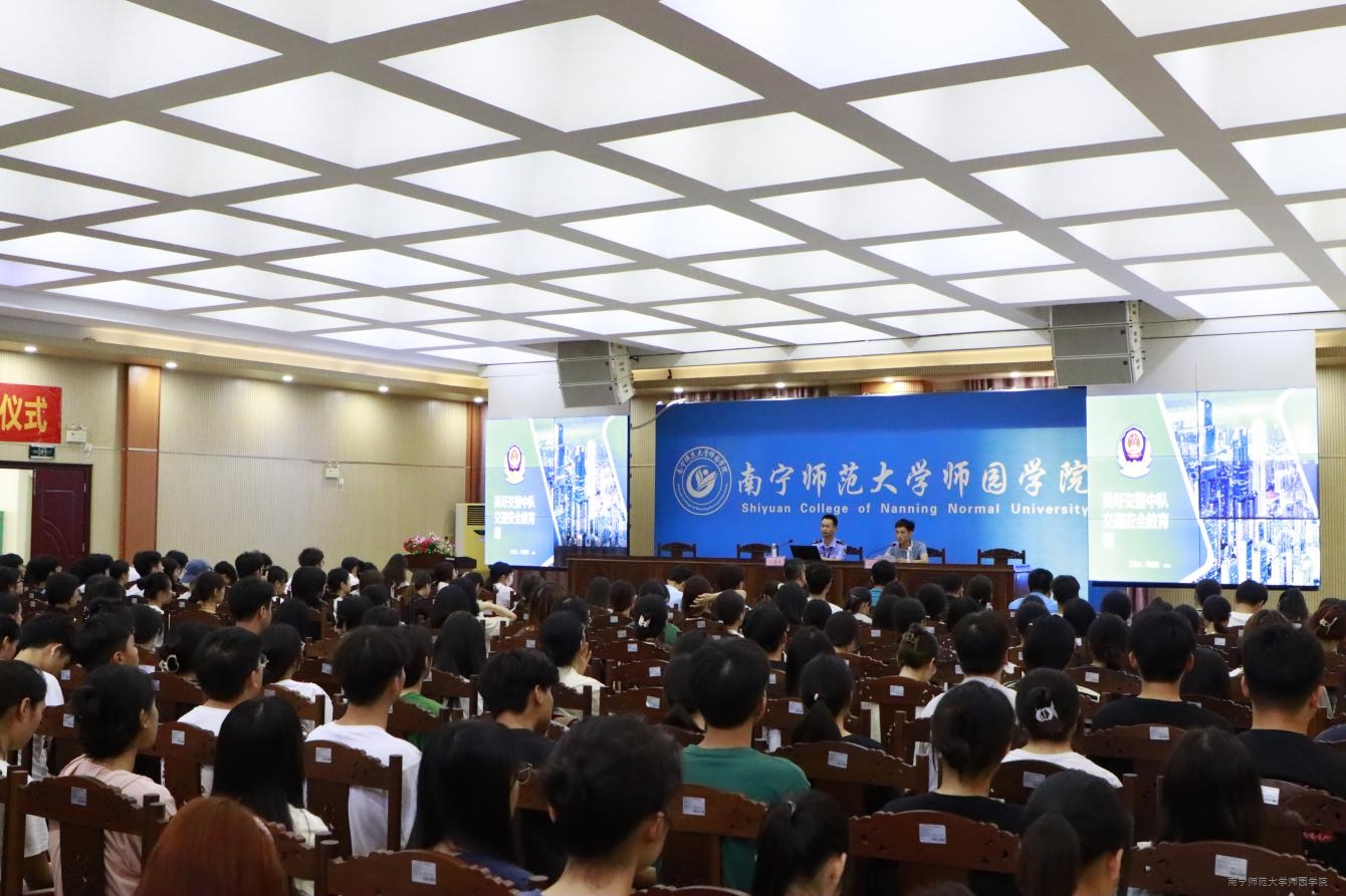 为教育引导学院师生增强交通安全意识,严格遵守教育法律法规,自觉守护个人生命财产安全,5月10日下午,我院在行政综合楼12楼第二报告厅开展交通安全教育专题讲座。南宁市吴圩镇交警中队政治指导员郑耀辉警官应邀主讲,学院保卫处处长苏琳、学工处处长叶栋与全院各班级班干部、辅导员共200余人聆听讲座。讲座由叶栋处长主持。