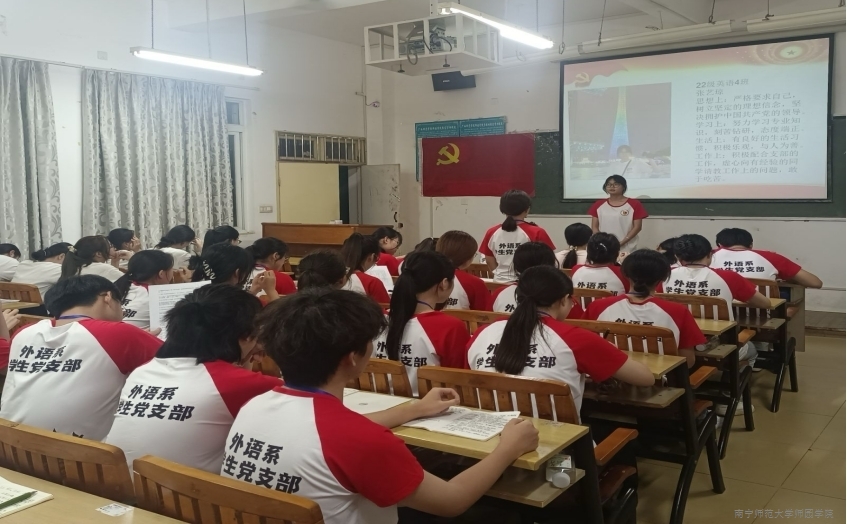 为进一步加强学生党员队伍建设,保证党员发展质量,增强党支部活力,5月13日晚,外语系学生党支部在教学楼3-307教室召开推优入党答辩大会。外语系学生党支部书记甘心淇老师与全体学生党员、20名推优入党候选人参加会议。