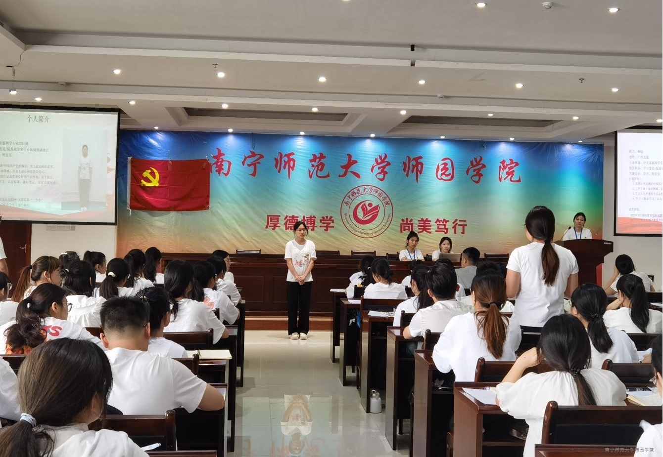 为进一步加强学生党员队伍建设,提升党员发展质量,5月14日上午,中文系学生党支部在图书馆6楼第一报告厅召开推优入党答辩大会。中文系学生党支部书记韦林志老师与全体在校学生党员、61名推优入党候选人参加会议。