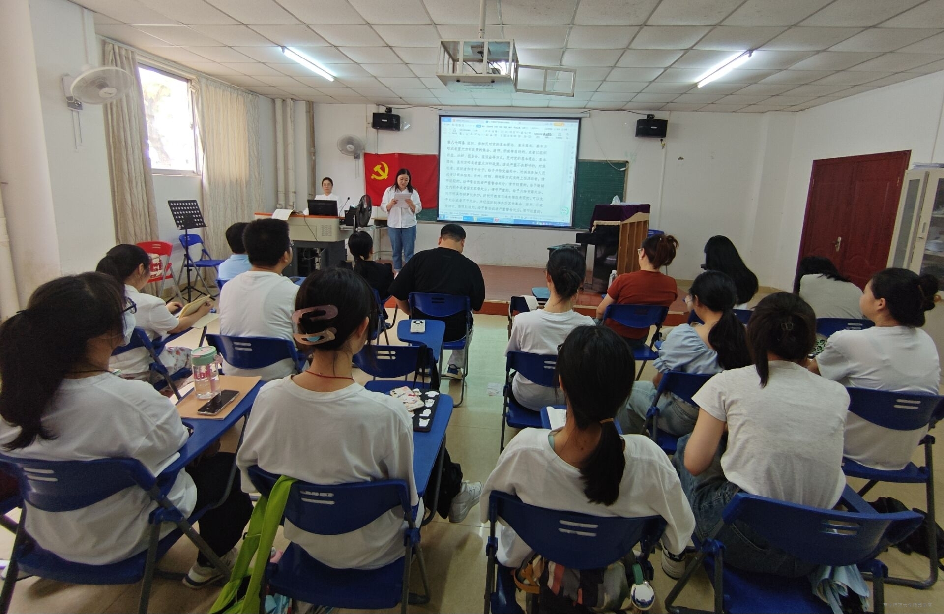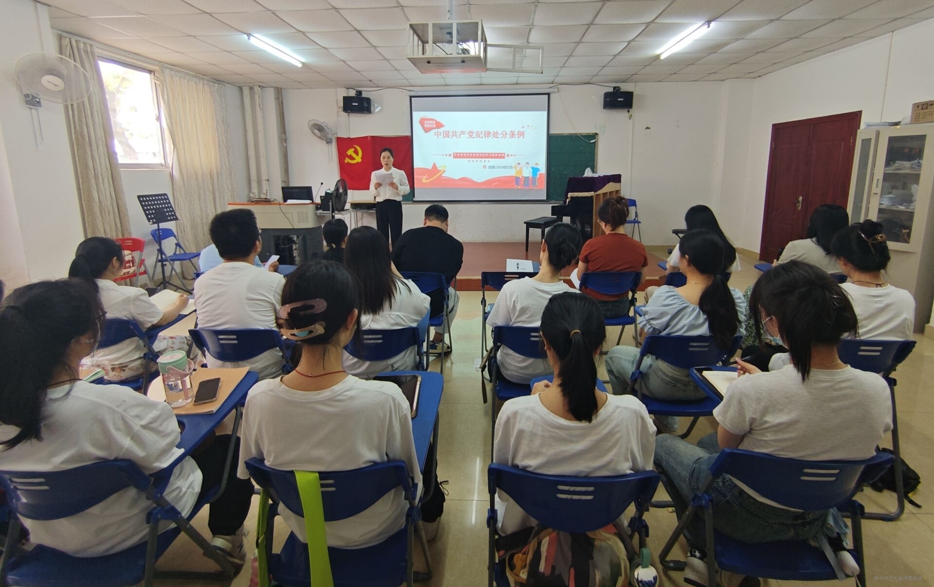 5月15日下午,艺术系党总支在8-105教室召开《中国共产党纪律处分条例》专题学习会。艺术系全体党员同志参加会议,会议由党总支书记吕富莲主持。