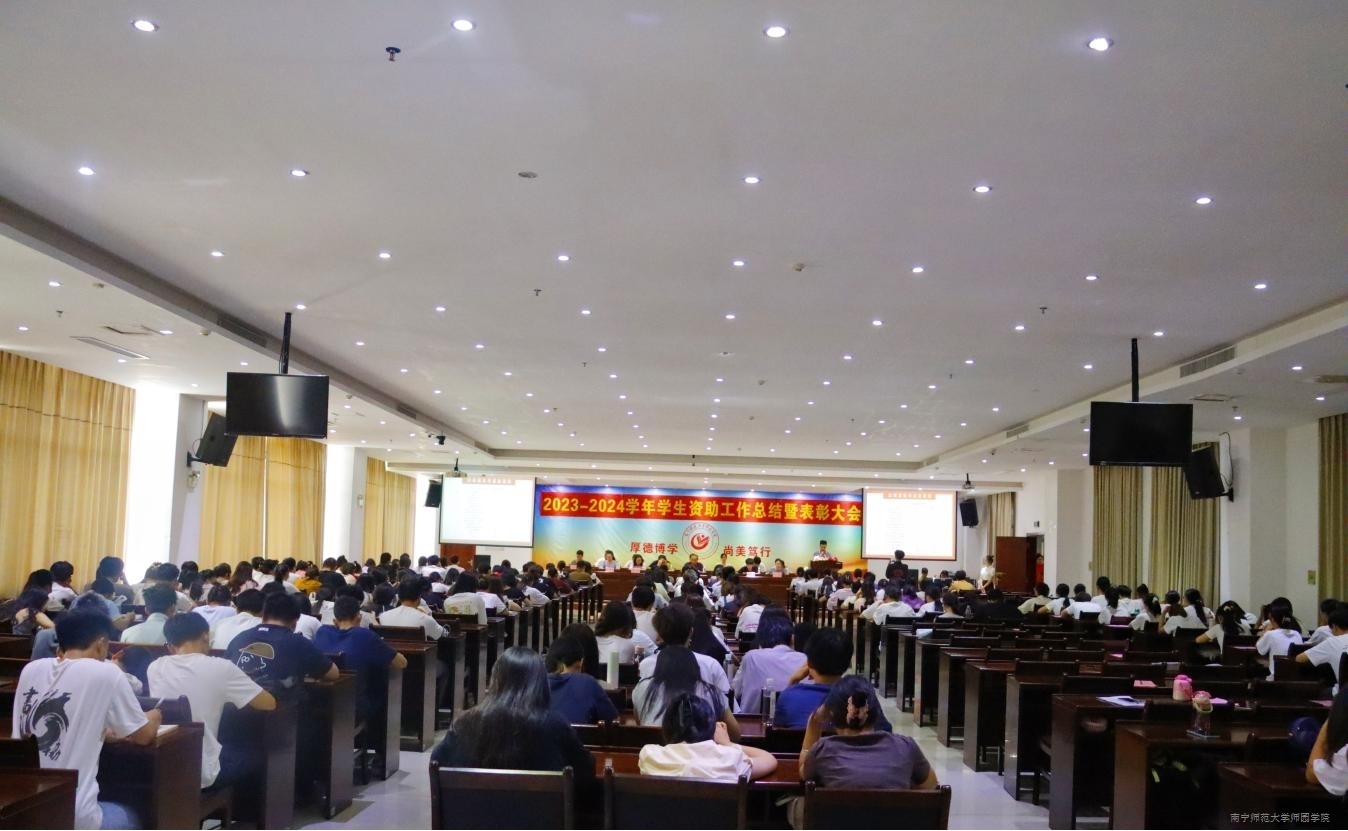 为进一步贯彻宣传党的二十大精神,落实立德树人根本任务,进一步做好学生资助工作,充分发挥学生榜样示范作用,激励广大师园学子踔厉奋发、勇毅前行,切实提升资助育人成效,6月4日下午,学院在图书馆6楼第一报告厅召开2023-2024学年学生资助工作总结暨表彰大会。学院党委书记梁春贤、计财处处长韦丽华、学生工作部部长叶栋、团委书记韦博文与学工(团委)系统全体人员、学院受助学生代表参加本次大会。