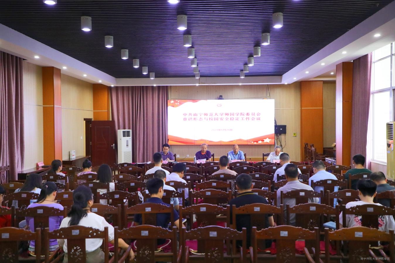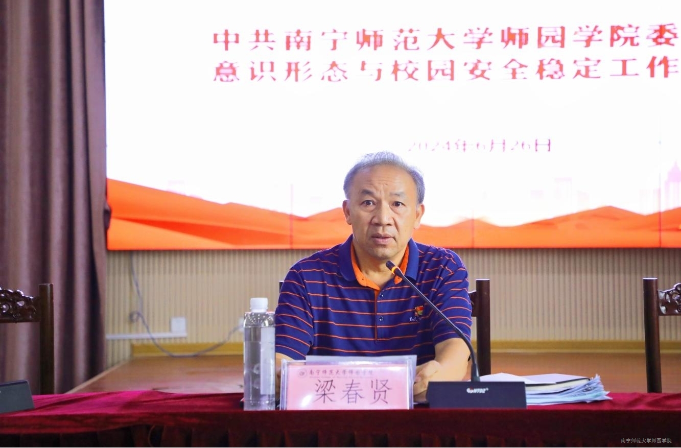梁春贤书记在会上还分别从加强组织领导,落实意识形态和校园安全稳定工作责任制;强化理论学习,加强党建引领;把握舆论导向,守好意识形态阵地;可能存在的风险点等方面对学院第二季度意识形态与校园安全稳定工作作分析研判,并强调要进一步加强意识形态和校园安全稳定工作,落实好意识形态工作责任,确保毕业季前后的校园安全稳定。随后,梁春贤书记结合学院工作实际对期末及假期校园安全稳定工作进行部署:一要落实好期末考试的有序安排和安全保障工作;二要落实好毕业生有序离校的思想教育工作;三要落实好2021级学生开展毕业实习的安全教育和指导工作;四要落实好非毕业班学生安全返乡和开展“三下乡”志愿服务活动等交通安全、人身安全的教育工作;五要落实期末和暑期期间的学院校园安全保卫工作,做好实验室及相关设备和公共设施的安全防护工作;六是开展好教职工暑期安全教育工作。