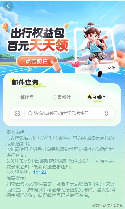 中国邮政录取通知书查询页面