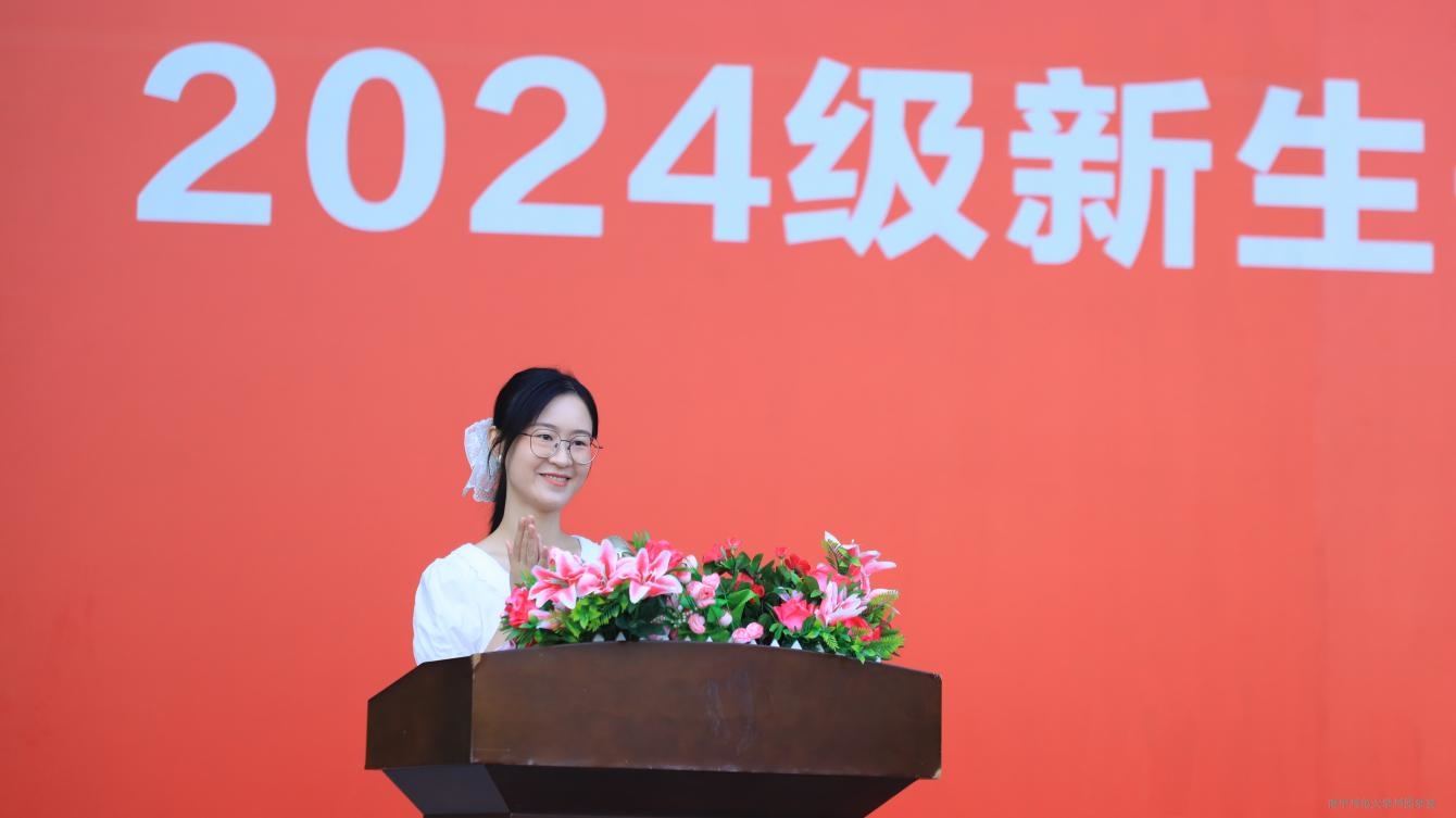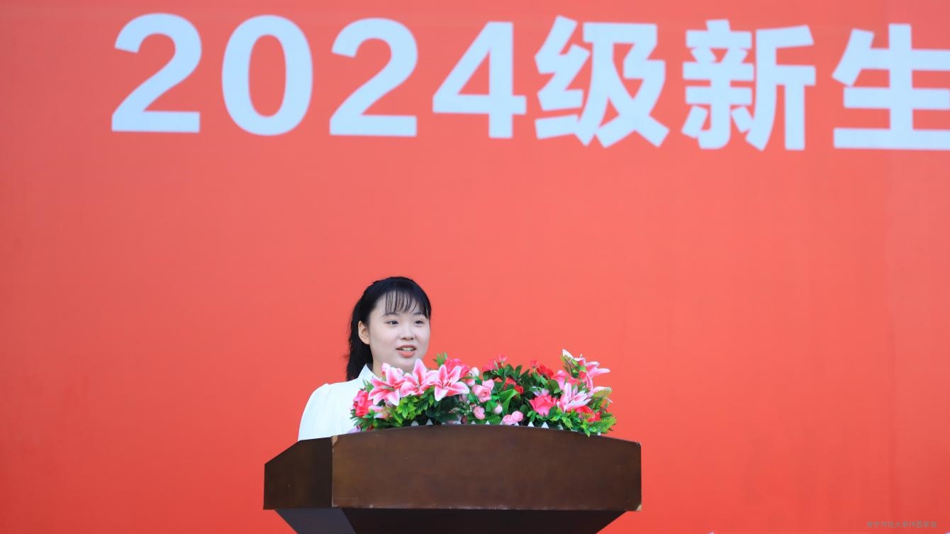 艺术系教师唐夏春作教师代表发言,她从学习生活、社会角度、国家层面三个方面给予新生努力进取、奋发向上的建议,希望我院新生在今后的生活中珍惜学习机会,培养独立思考和责任感,积极参加国家建设,展现爱国情怀,共同创造活力新学期。中文系2022级汉语言文学专业曹婧薇同学代表高年级发言,鼓励新生们拥抱新变化,明确目标,学会合作,在大学这个充满无限可能的舞台追求梦想,勇往直前。外语系英语专业2402班韦烷馨同学代表2024级全体新生向师长致以最衷心的感谢与祝福,并表示要以努力、奋进的姿态迎接大学新生活,把握奋斗的机会,笃行实践,以梦想为笔,书写青春华章。