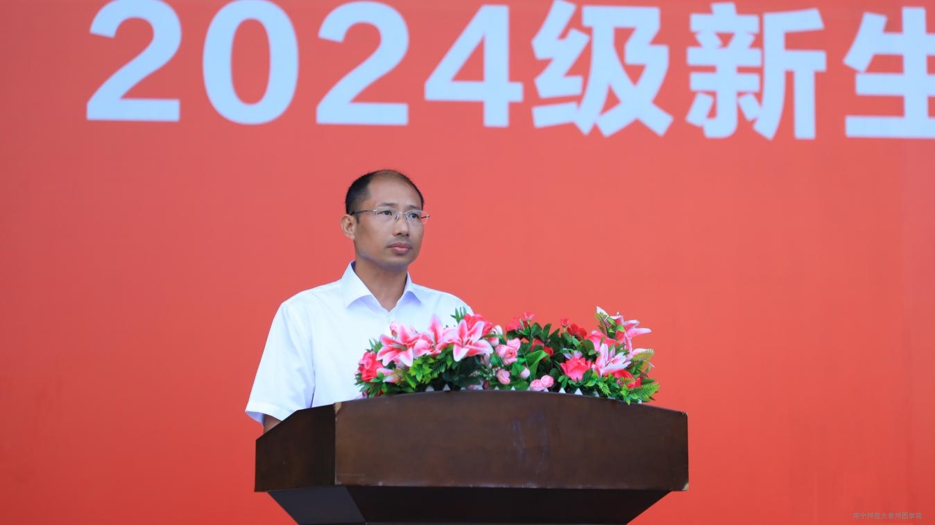 开学典礼在庄严肃穆的升旗仪式中拉开帷幕。尹文嘉院长在典礼上作题为《赓续奋斗,激扬青春,努力绘就人生青春新蓝图》的重要讲话。他代表学院全体师生向加入师园学院大家庭的2024级新生表示欢迎和祝贺,向辛勤培育新生的家长及老师致以敬意和感谢。随后,尹文嘉院长从办学历程、专业建设、学科建设、防城港新校区建设情况等方面详细介绍了师园学院的建设成效、奋进历程与蒸蒸日上的发展趋势,希望新生们在大学期间把握好成才机遇与使命担当,用奋斗擦亮青春底色,勇攀高峰。为鼓舞2024级新生们走好师园之旅,成就更好的自己,尹文嘉院长对同学们提出三点殷切希望。一是高擎理想的火炬接续奋斗。以高远理想为灯塔,坚定信念,自觉将个人理想与国家命运相连,自觉抵御错误思潮,清晰规划未来方向并珍惜大学时光,砥砺前行,让青春在奋斗中闪光。二是勇担新时代重任不负韶华。全体新生生逢其时、重任在肩,要铭记新时代责任和使命,刻苦学习专业知识和技能,在学习实践中注重理论与实践相结合,夯实个人综合实力并主动把握机遇,以实际行动践行“请党放心、强国有我”的铮铮誓言。三是用闪耀青春的光辉彰显品质。全体新生要继承和发扬中华优秀传统文化,在实践中锤炼意志品质、积蓄精神力量,以力所能及的力量积极投身中国现代化建设,让青春无悔绽放。尹文嘉院长期盼学院2024级新生们以饱含热情和坚定理想信念在人生的新征途中稳步迈进!