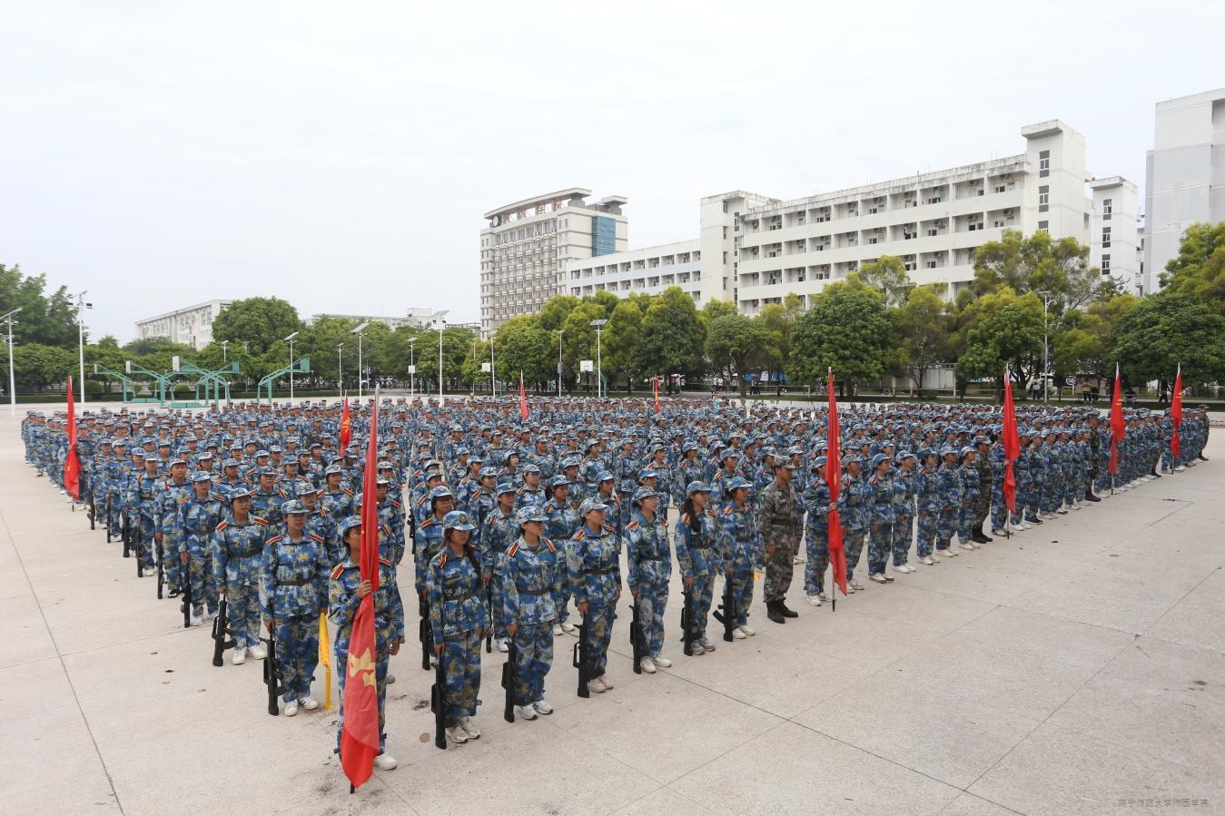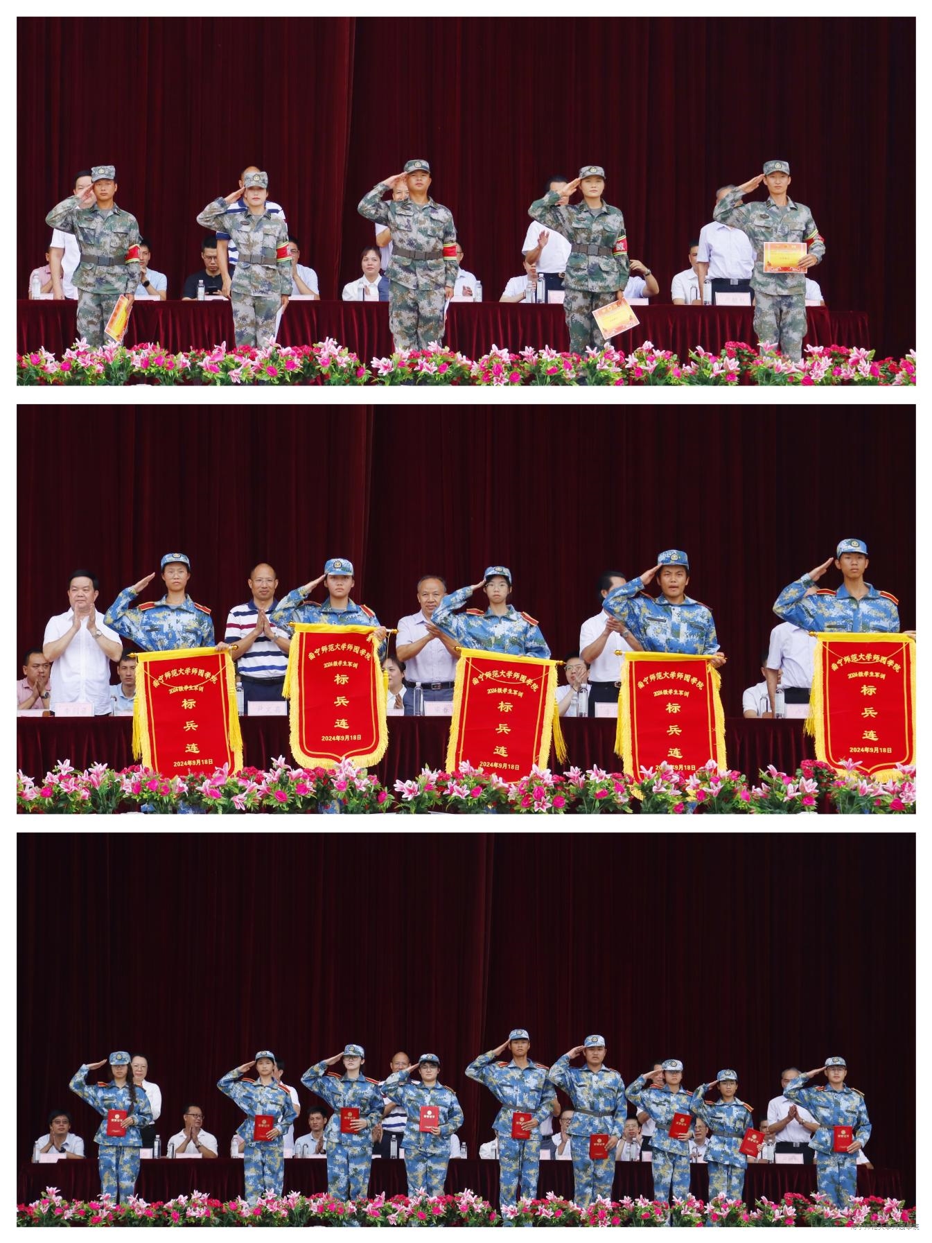 上午9时30分,在庄严肃穆的升旗仪式后,2024级新生身着迷彩服,以连队为单位依次进行汇报,接受主席台领导、师生检阅。他们用嘹亮的口号、坚毅的目光、整齐的步伐、标准的动作,向在场的师生们展示了军训成果,展现了师园学子昂扬奋发、勇敢坚毅的精神风貌和青春风采。2024级新生们军姿挺拔、动作规范、气势威武,精彩表现赢得了阵阵掌声和喝彩声。