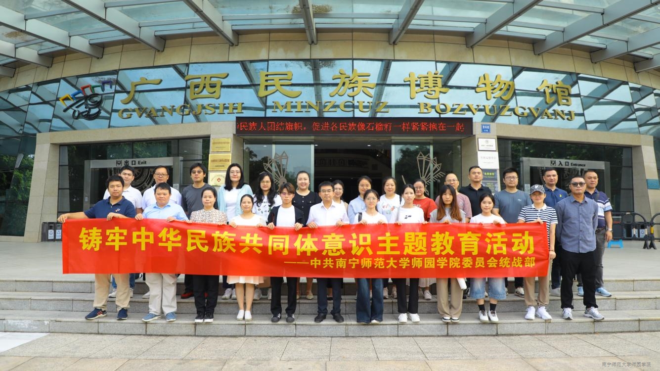为深入学习贯彻习近平总书记关于加强和改进民族工作的重要思想,教育引导学院师生铸牢中华民族共同体意识,9月25日上午,学院副院长申书飞率领中层干部、民主党派人士、各党总支书记、优秀师生代表赴广西民族博物馆开展铸牢中华民族共同体意识主题教育活动。