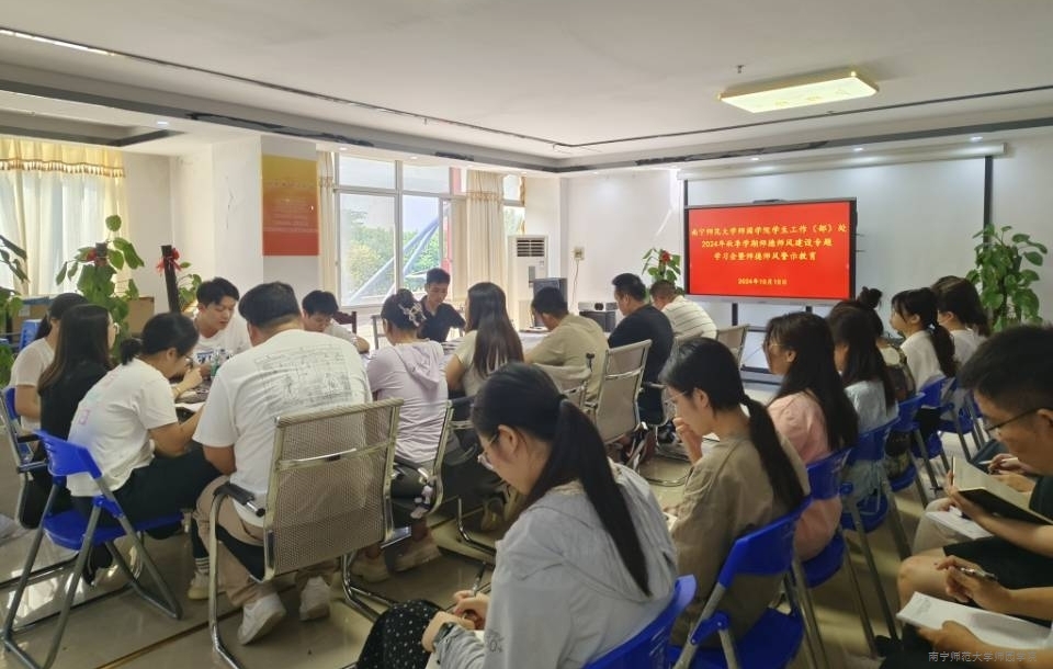 为深入学习贯彻习近平新时代中国特色社会主义思想,贯彻学习习近平总书记关于教育的重要论述和指示批示精神,坚决落实师德师风第一标准,加强师德师风建设,强化教师的责任感和使命感,夯实立德树人根基,10月10日上午,学生工作部于行政楼2楼会议室召开2024年秋季学期师德师风建设专题学习会暨师德师风警示教育。本次会议由学生工作部部长叶栋主持,学工(团委)系统全体人员参会。