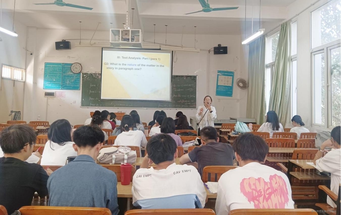 本次教学观摩课由外语系李爱宁副教授主讲,授课内容为《Theory of Relativity》。课堂上,李爱宁副教授巧妙地导入课程内容的背景信息,随后循序渐进地分析讲解文章的结构、段落赏析与阅读理解。李爱宁副教授在教学过程中注重通过举例说明和互动问答的方式引导学生深入思考,让学生在轻松愉悦的学习氛围中发挥学习的主动性探究领会文章主旨,达到较好的教学效果。