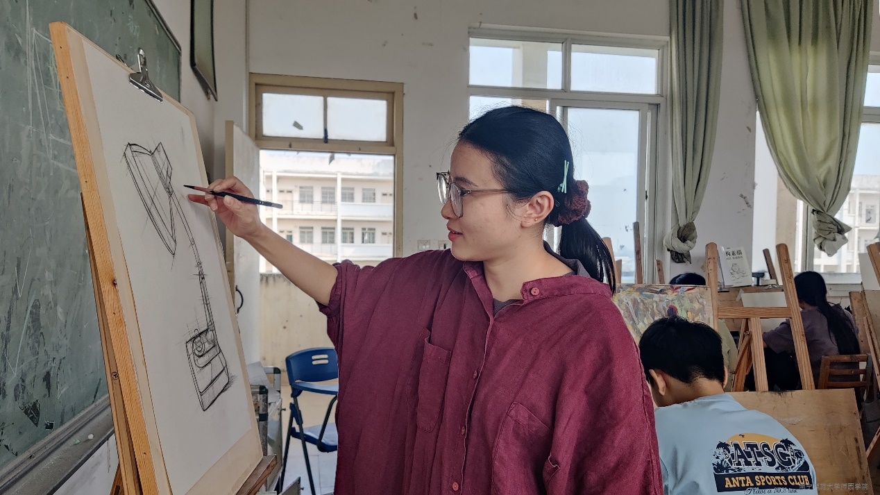 本次教学公开课由艺术系专任教师韦慧媛主讲。课堂上,韦慧媛老师以“台灯”为主题带领学生学习素描绘画。她深入解析了台灯的结构、塑造、画法、特征等特点并详细讲解绘画台灯的基本步骤、注意要点等内容,让学生们对台灯的绘画有了更清晰地认识。随后,韦慧媛老师进行现场示范绘画并细致地讲解了起形、外部结构和内部结构的特点,分局部进行塑造并深入剖析线条与结构、光影的关系,为学生们提供了直观的学习范例。最后,在韦慧媛老师的指导下,学生们进行了自行练习,检验学习成效。教学过程中,课堂氛围活跃,学生们积极参与,学习主动性高,充分展现了对结构素描的浓厚兴趣和学习热情。