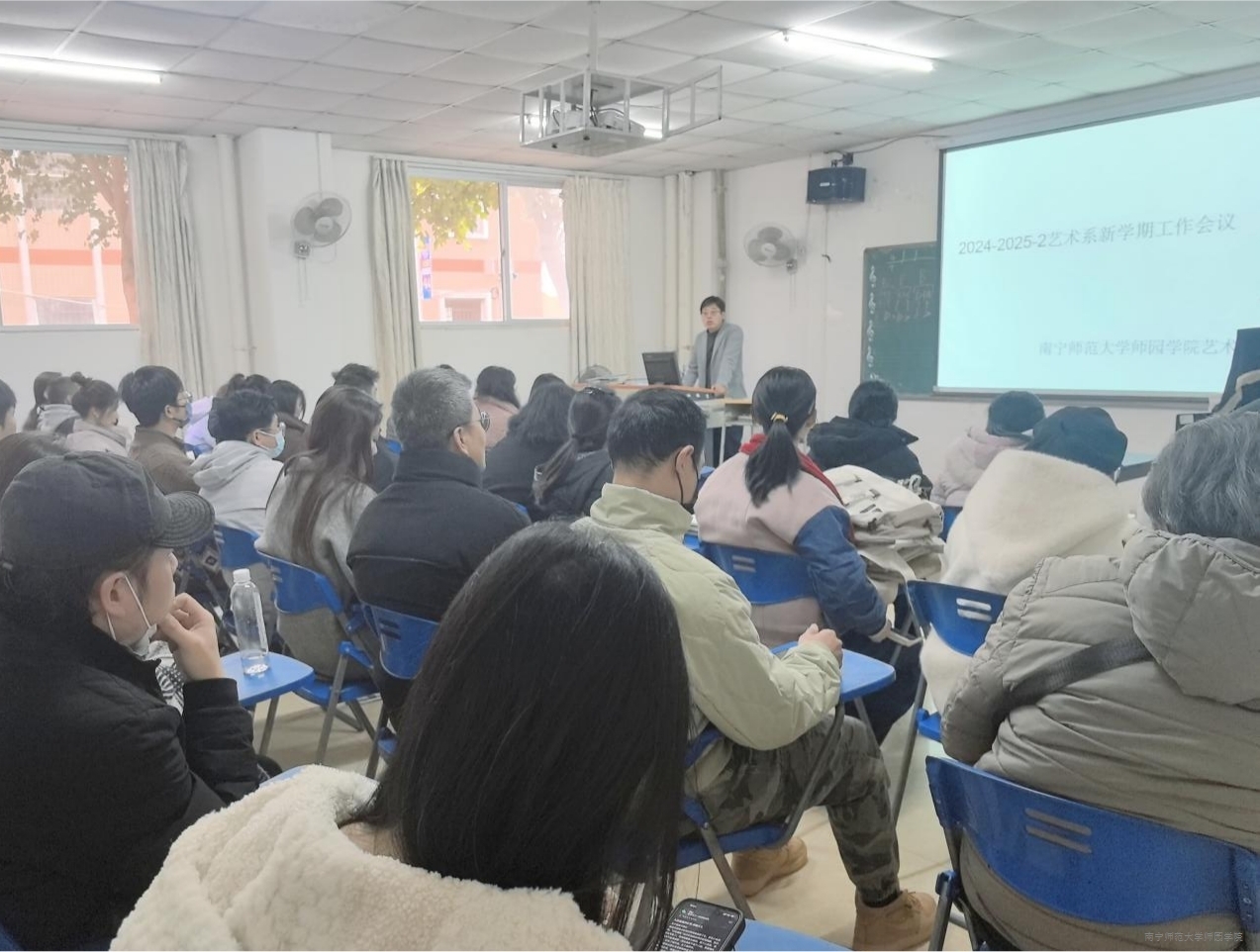 会上,韩聪主任还强调指出,本学期艺术系邀请了多位南宁师范大学专家为师生授课,倡导各位教师随堂观摩,提高教学质量。