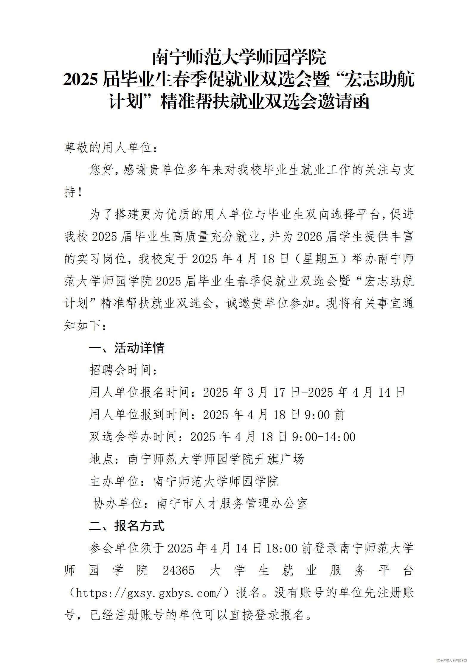 Beat365唯一官方网站2025届毕业生春季促就业双选会暨“宏志助航计划”精准帮扶就业双选会邀请函