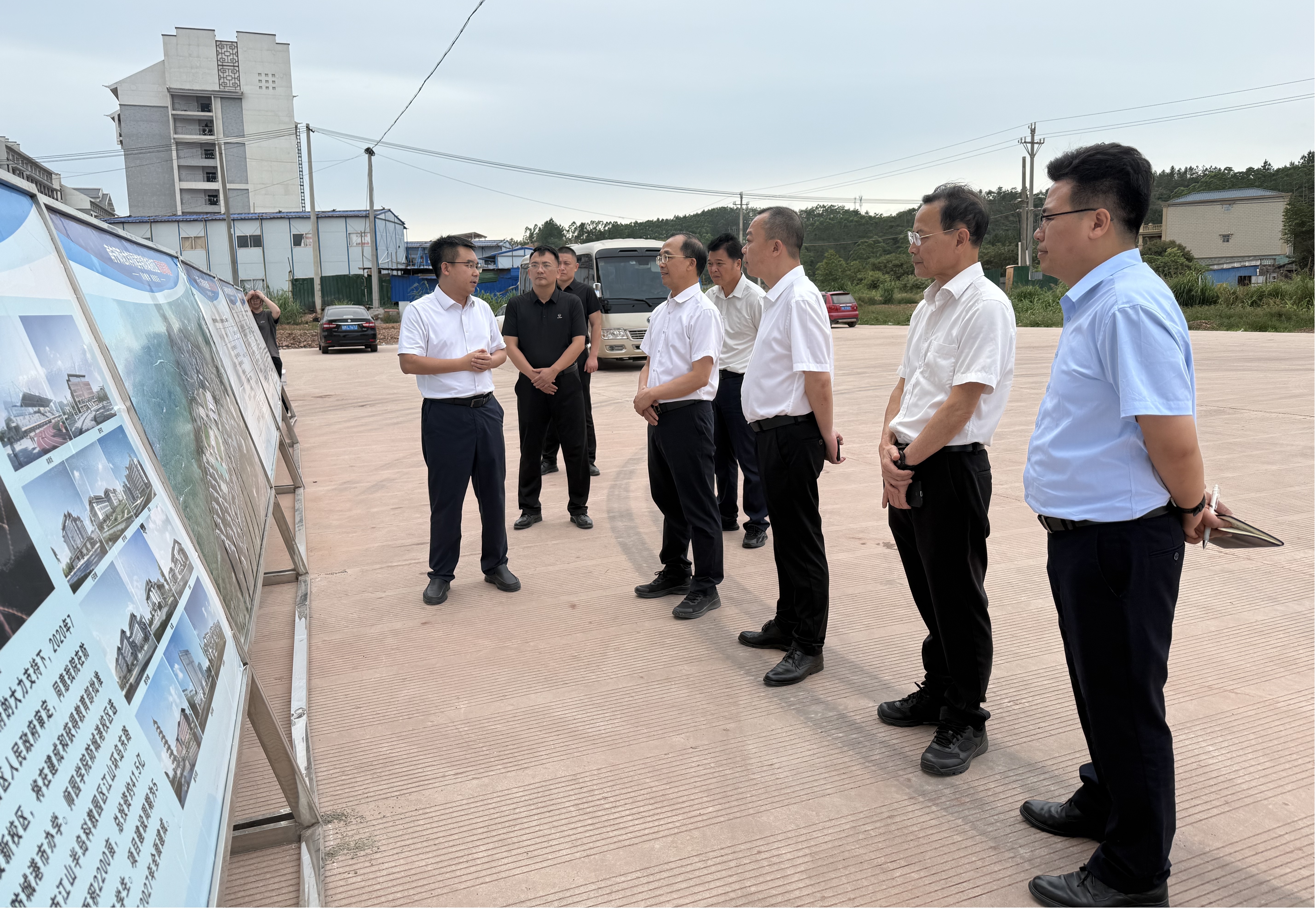 5月29日下午,防城港市政协主席、党组书记梁宗勇率队到我院防城港校区项目现场开展调研工作。学院副院长、防城港校区项目指挥部常务副指挥长申书飞及相关部门负责人在项目现场陪同调研。