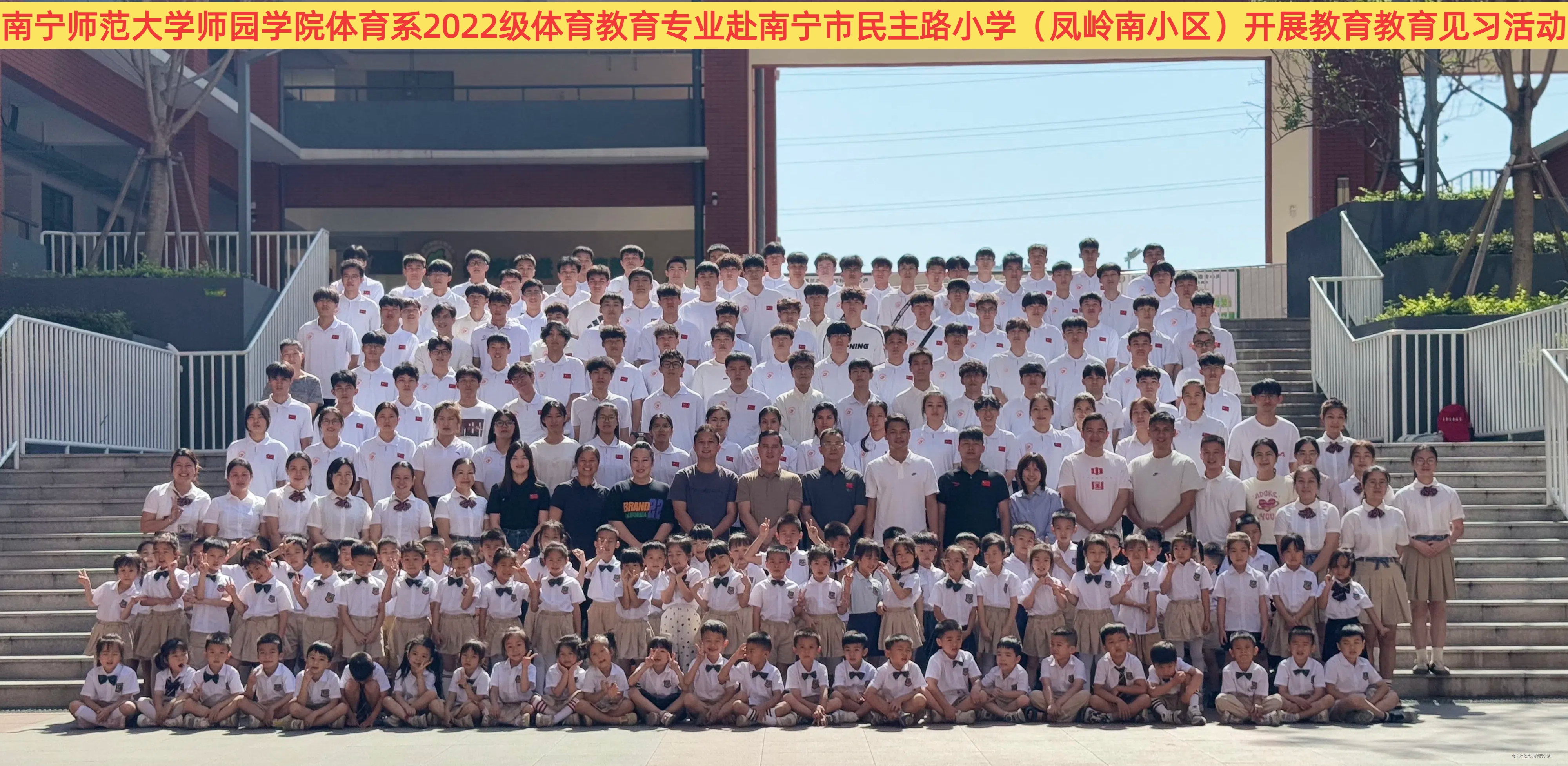 为提升学生教学实践能力,5月12日和5月23日,体育系组织2022级体育教育专业学生赴民主路小学(凤岭南校区)及南宁市第二十中学开展教育见习活动,体育系主任邓朝、辅导员及教师代表全程带队指导。