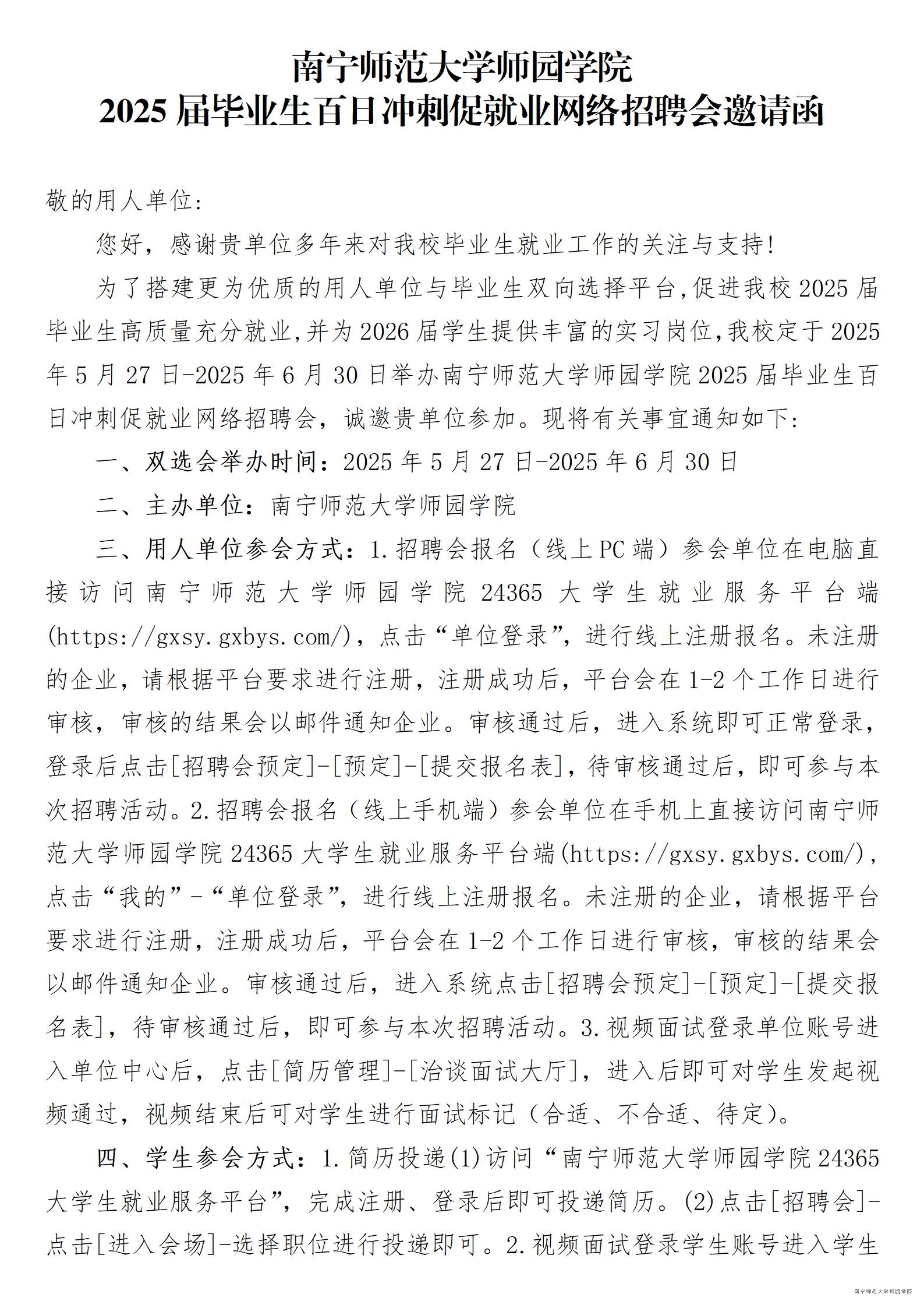 Beat365唯一官方网站2025届毕业生百日冲刺就业网络招聘会邀请函