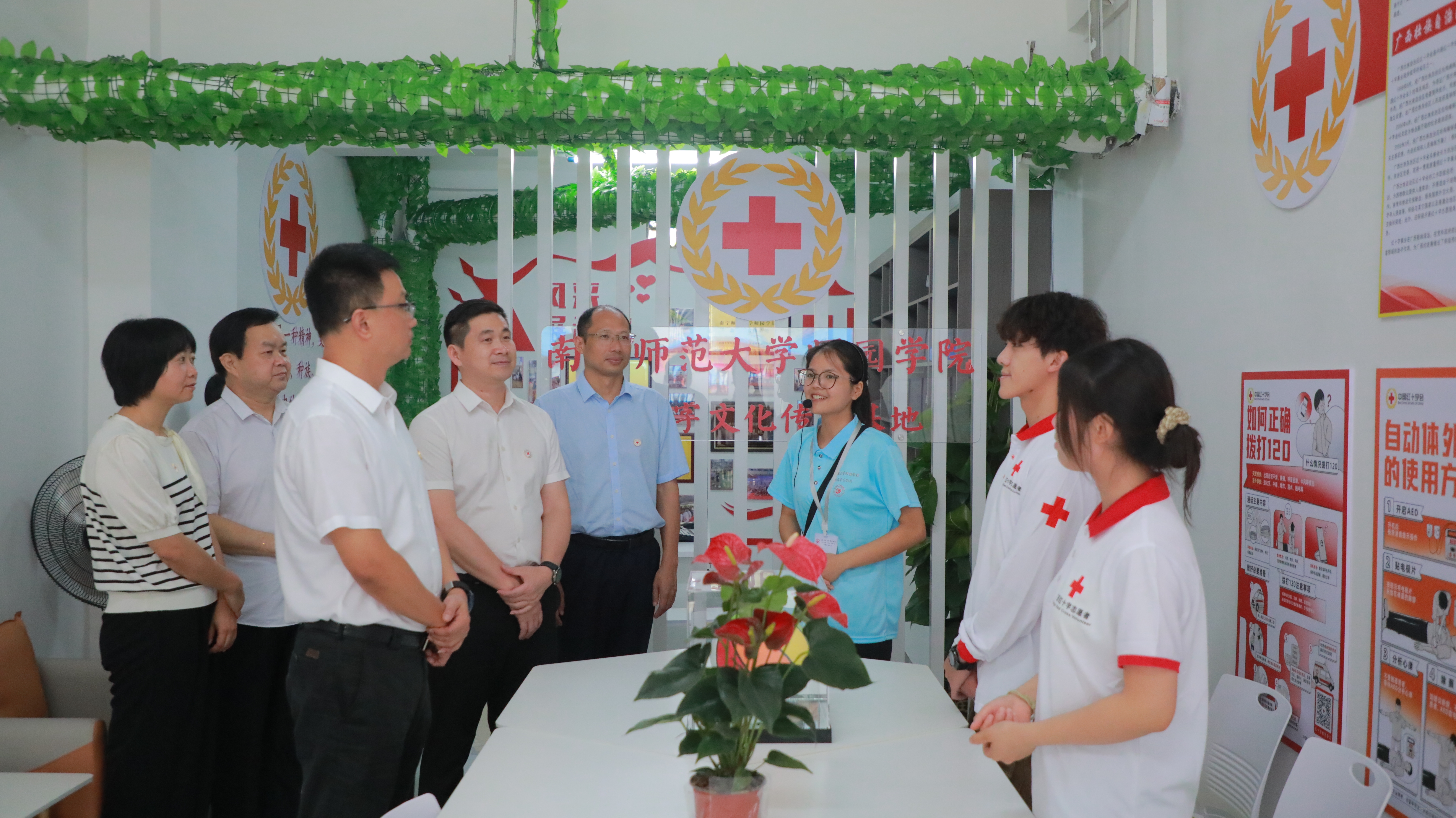 为深入贯彻习近平新时代中国特色社会主义思想,贯彻落实习近平总书记关于教育的重要论述、关于红十字事业重要指示批示精神,我院于6月11日上午举行“一站式”学生社区暨红十字文化传播基地揭牌启用仪式。自治区红十字会党组成员、副会长兼秘书长吴强,自治区红十字会组织发展部副部长乔良,南宁市红十字会党组成员、副会长郑静,学院党委副书记(主持党委工作)梁秋,学院党委副书记、院长尹文嘉,学院党委副书记、常务副院长李剑喜,学院相关单位负责人及师生代表共同出席本次揭牌启用仪式。