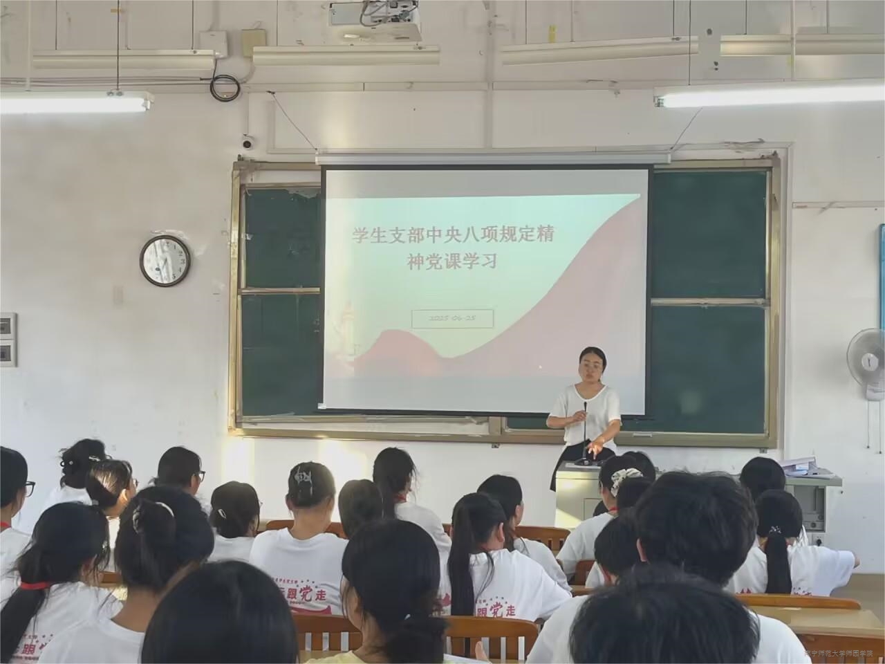 为深化全面从严治党向基层延伸,筑牢高校党员纪律防线与作风根基,6月25日下午,经管系学生党支部于教学楼4-408教室开展中央八项规定精神党课学习。此次党课由学生党支部书记刘倩同志主讲,全体在校党员及党建助理参加学习。