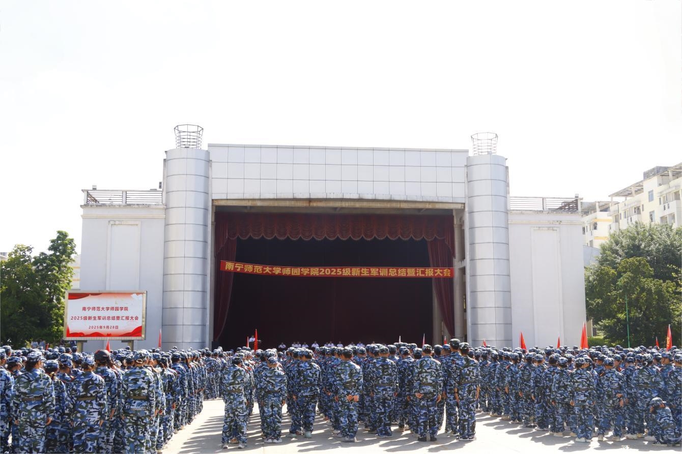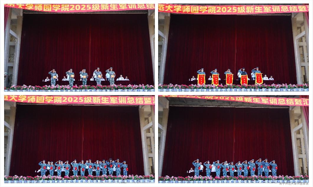 党委副书记、常务副院长李剑喜在大会上宣读《南宁师范大学师园学校关于表彰2025级新生军训“优秀教官”“标兵连”“优秀学员”的决定》文件,充分肯定了2025级新生军训成果并激励同学们在今后的学习生活中坚定爱国主义信念,继续发扬艰苦奋斗、勇敢顽强的精神。学校领导为在军训中表现突出的集体和个人颁发奖项。