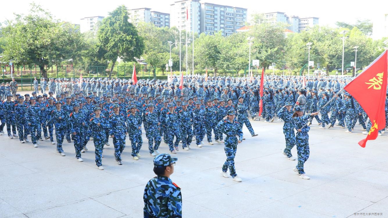 梁秋副书记在大会上作重要讲话。他指出,今年的军训有着特殊的时代分量,不仅是大学的必修课,更是一场跨越80年的红色精神对话。训练场上,同学们的每一次坚持、每一次协作,都是对革命先辈忠诚坚定、不怕牺牲、艰苦奋斗精神的最生动传承。为进一步启发2025级新生用智慧和奋斗来回答“如何强国”的时代命题,梁秋副书记向全体2025级新生提出三点希望:一是把“坚持”融入血脉,在学业探索中扎根。以百折不挠的毅力与坚韧不拔的精神面对未来的学习和生活,让坚持成为青春最坚实的底色。二是把“团结”刻进品格,在集体生活中成长。在集体中发光发热,在互助、互爱中共同成长、共同进步,珍惜同为师园人的情谊,让团结成为青春最美的和声。三是把“责任”扛在肩膀,在时代浪潮中担当。把个人理想融入专业学习,让青春梦想扎根民族复兴,努力成为有理想、敢担当、能吃苦、肯奋斗的新时代青年。