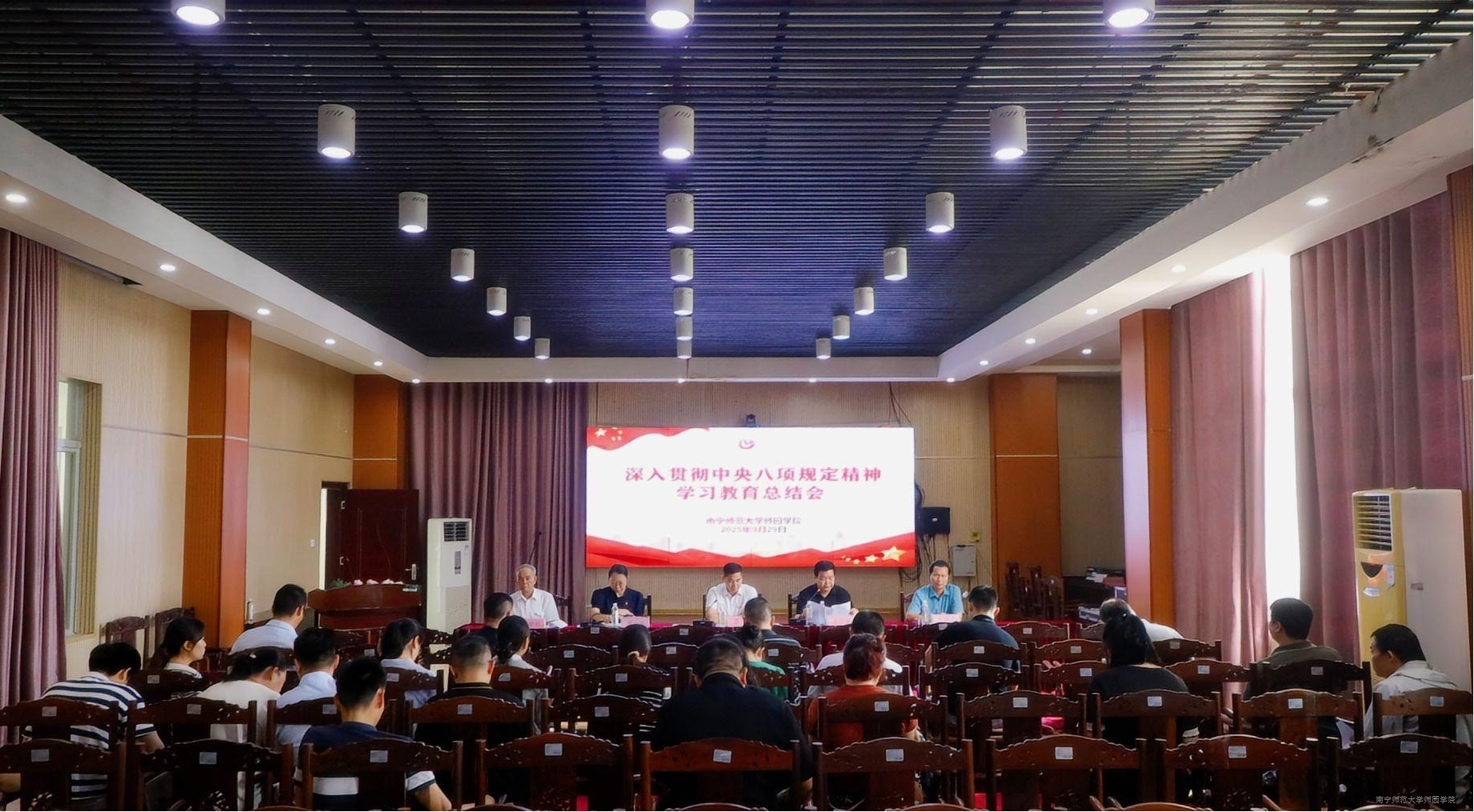 最后,梁副书记作总结讲话。他指出,本次会议既是对过往阶段学习教育工作的系统梳理,也是对持续深化作风建设的再动员、再部署,党委将以此次总结为新起点,把作风建设抓常、抓细、抓长。为持续深化八项规定精神落实,他强调四点工作要求:一是在常学常新上持续深化。将中央八项规定精神作为党员干部终身必修课,不断丰富学习形式,提升学习效果,筑牢拒腐防变的思想堤坝。二是在监督检查上精准发力。紧盯重点领域、关键岗位和“四风”新动向、新表现,加大监督检查和通报曝光力度,对顶风违纪行为“零容忍”。三是在完善制度上提质增效。持续优化完善作风建设配套制度体系,强化制度执行力检查,确保铁规发力、禁令生威。四是在文化涵养上深耕厚植。大力弘扬清廉文化,营造崇尚廉洁、抵制歪风的良好校园生态,让新风正气在师园学院蔚然成风。