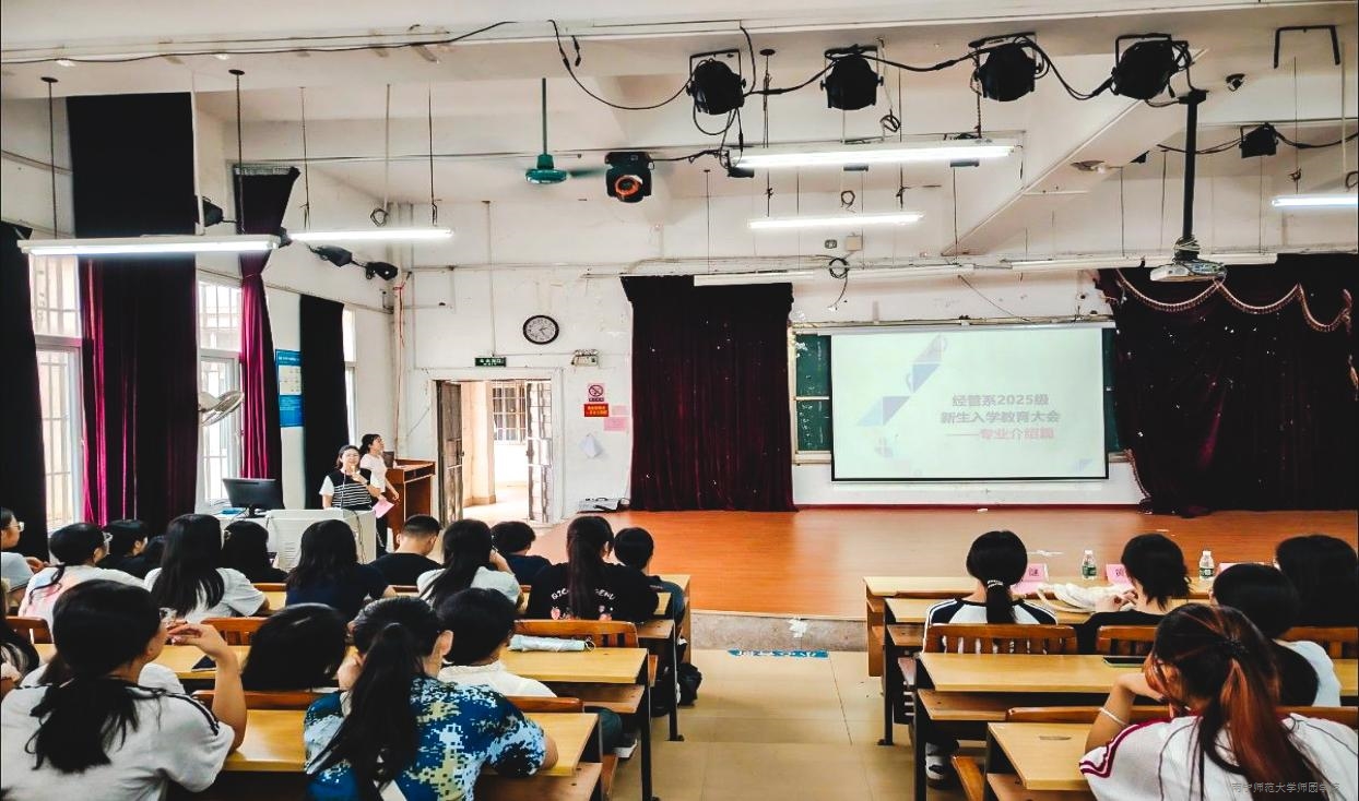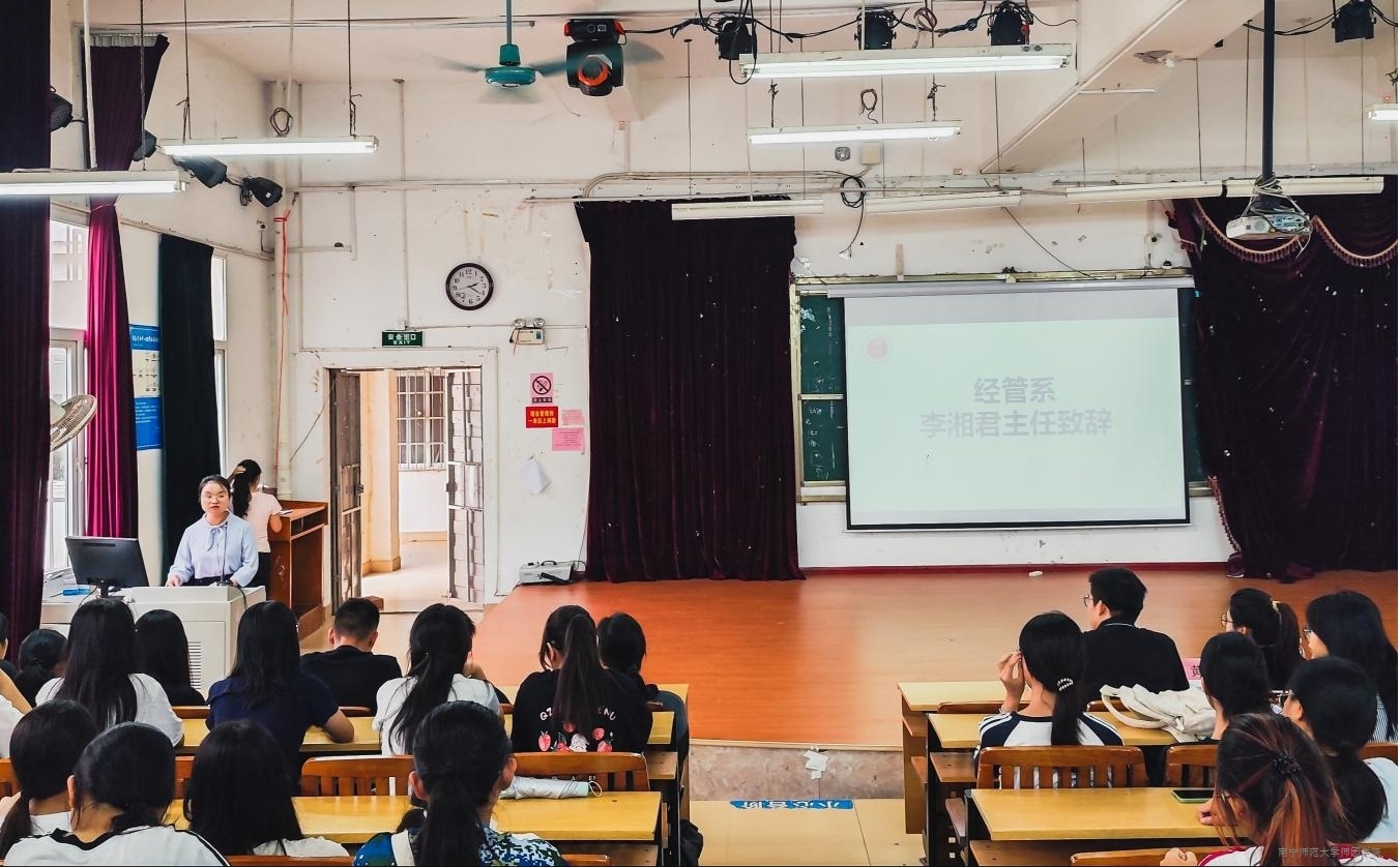 为帮助2025级新生深化专业认知、明晰学业路径、快速融入大学学习生活,9月29日下午,经管系在教学楼4-108教室召开2025级新生入学专业教育大会。经管系主任李湘君、副主任黄闵、专任教师代表、新生辅导员及2025级全体新生共同参会。