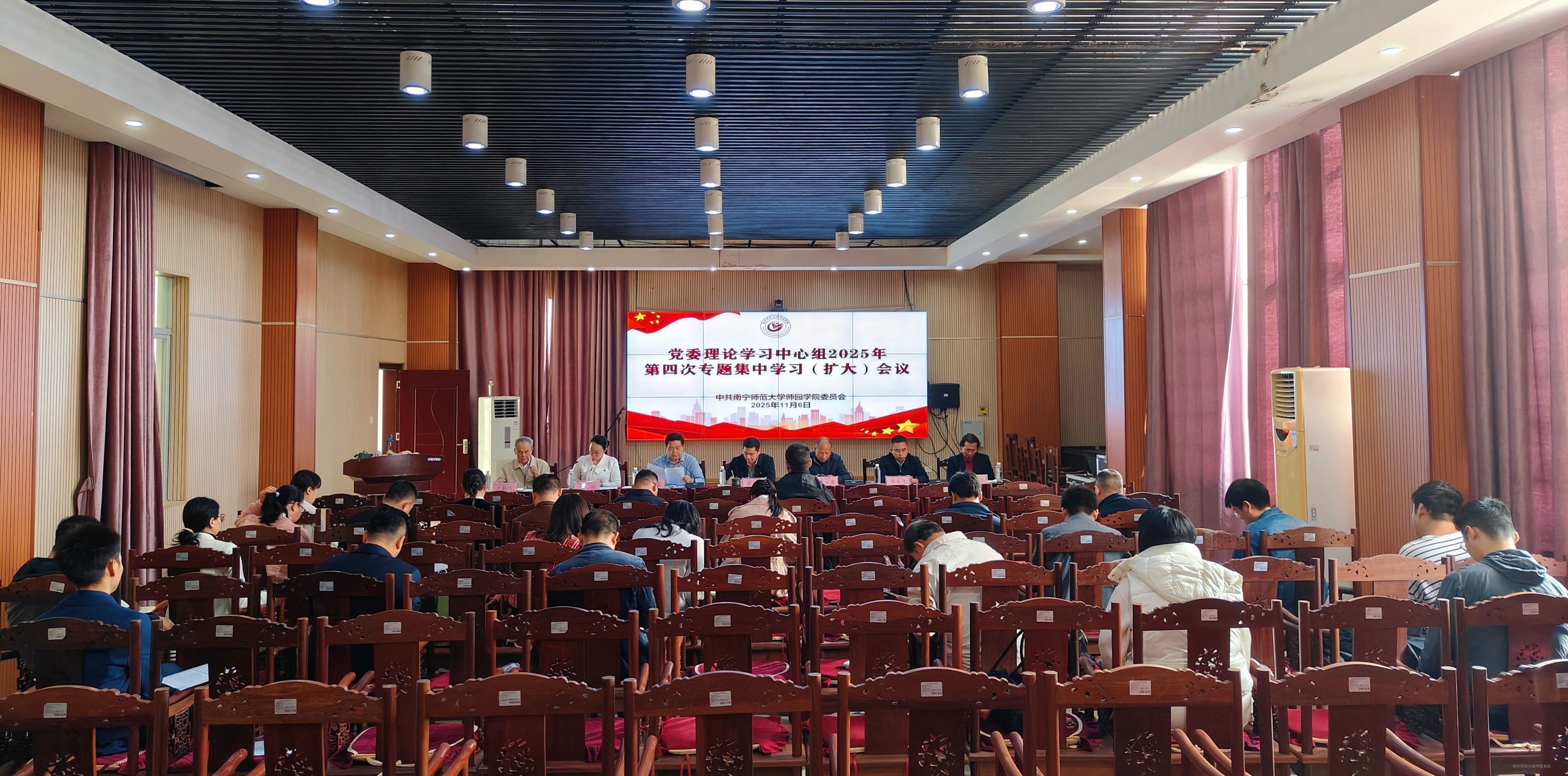 11月6日上午,学校在行政综合楼第三会议室召开党委理论学习中心组2025年第四次专题集中学习(扩大)会议。学校党委副书记梁秋(主持党委工作),党委副书记、校长尹文嘉,党委副书记、常务副校长李剑喜,副校长申书飞,纪委书记、副校长庞俊以及学校全体党委委员参加会议。副校长李德正、教学总督导卢敏秋,各部门负责人,各党总支和各直属党支部书记列席会议。会议由梁秋主持。