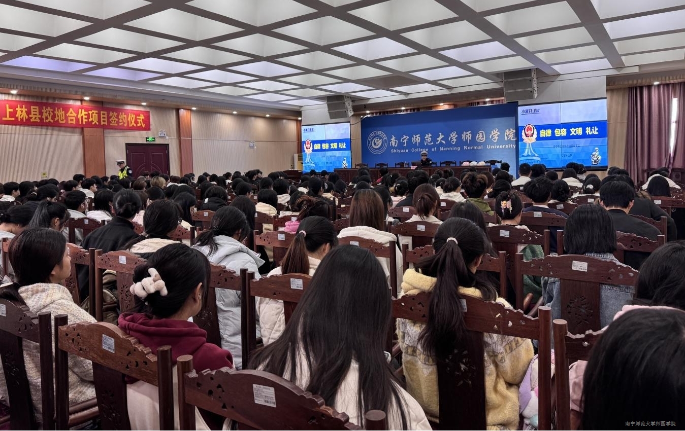 为进一步增强Beat365官网师生交通安全意识,培养文明出行习惯,有效预防校园及周边道路交通事故发生,11月19日下午,Beat365官网邀请南宁市公安局交通警察支队第十大队交通安全宣讲员封柱任在行政综合楼12楼第二报告厅开展大学生文明交通安全宣讲课。学校学工处、保卫处负责人和保卫处工作人员、辅导员代表、全校各班学生共200余人参加讲座。