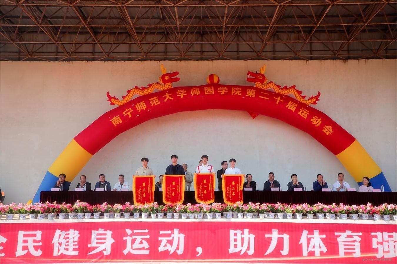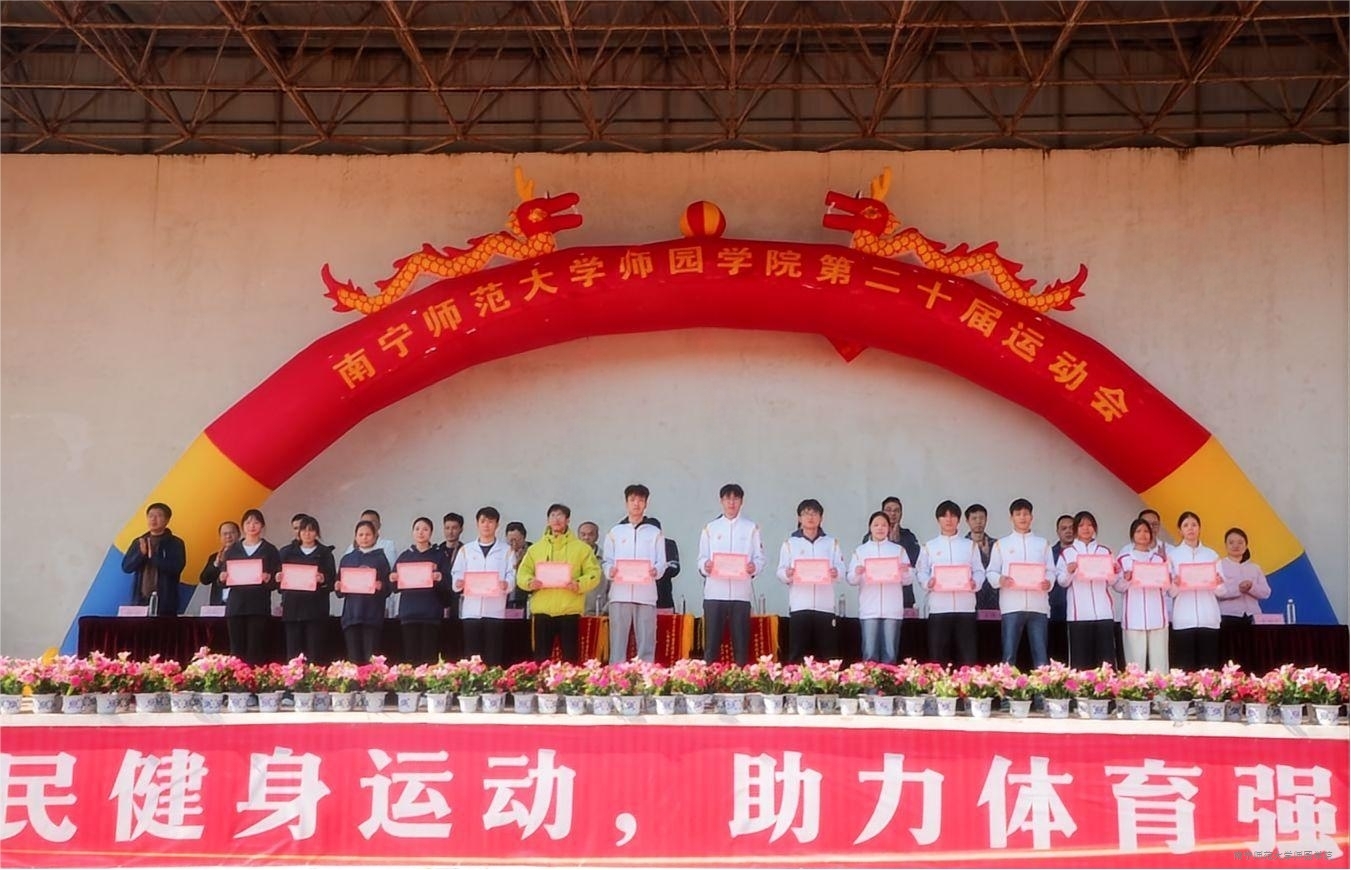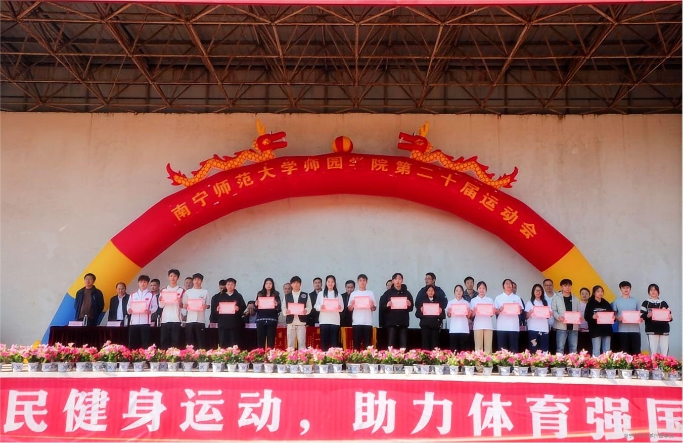 本届运动会是一次充满激情、凝聚力量、展现风采的盛会。运动员们赛场争先、奋力拼搏用汗水诠释竞技精神,赛事尽显青春活力与拼搏风采。经过激烈的角逐,理工系一队荣获甲组团体总分第一名,体育系2025级荣获乙组团体总分第一名。此外,教育系代表队、理工系代表队获评“精神文明运动队”荣誉称号;中文系、艺术系获评为“入场仪式优秀组织奖”单位;韦懿轩等18名学生获评为“精神文明运动员”称号;庞娜等27名学生获评为“优秀运动员”称号;唐晓薇等15名学生获评为“优秀裁判员”称号。学校领导依次为获奖系部、班级、运动员、裁判员颁发奖状、锦旗,予以鼓励。现场掌声不断,气氛热烈。