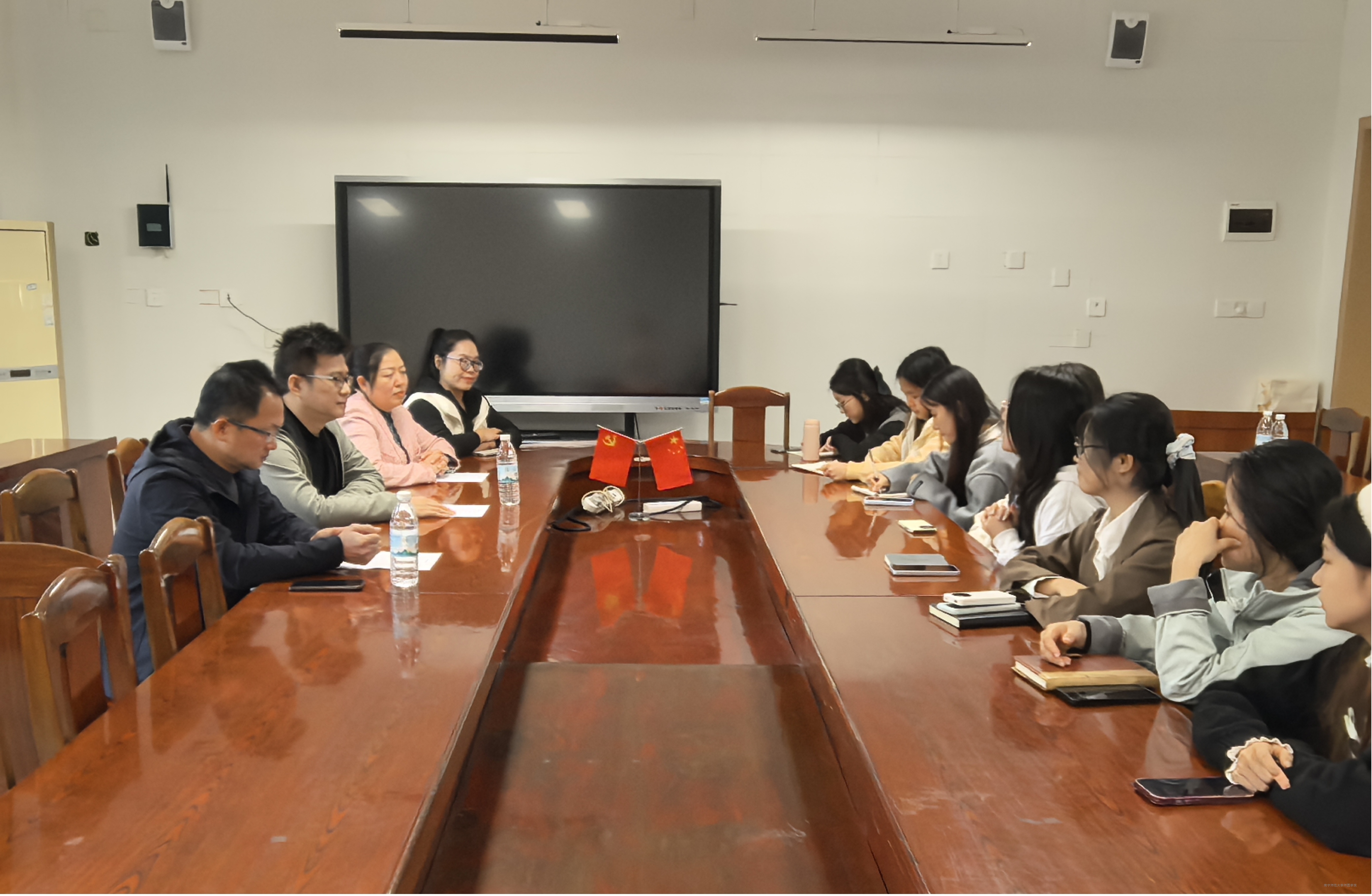 12月18日上午,教育系副主任龚雪、小学教育教研室主任林文飞、专任教师彭永康前往中山路小学,与该校德育主任张宝及13位2022级小学教育专业实习生进行座谈。会上,实习指导教师结合日常听课与教学指导情况,对实习生的教学设计、课堂管理、师生互动等方面进行了细致反馈,普遍认为学生专业基础扎实、工作态度端正。同时,实习指导教师也对实习生在课堂应急处理、学生个体差异关注等方面提出了中肯建议。实习生们交流分享了从理论学习到真实教学场景转换的体会与反思。