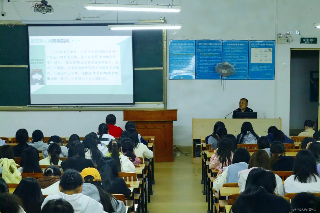 在宣讲活动中,谢所长通过大数据分析了青年大学生高发和常见的电信诈骗类型,系统剖析了冒充公检法、游戏交易、冒充熟人、刷单兼职等高发诈骗类型的作案手法,揭露了诈骗分子如何有针对性地利用大学生性格特点实施“量身定制”的诈骗方式,阐明了电信诈骗的危害。谢所长着重强调,同学们在日常学习生活中要守好自己的“钱袋子”,切勿因“小利”掉入陷阱,更不能出借银行卡、电话卡、网络虚拟账号等,不要充当诈骗分子的“工具人”,要加强对电信安全知识学习,不断增强自我保护意识和安全防范意识,共同构建安全和谐校园。