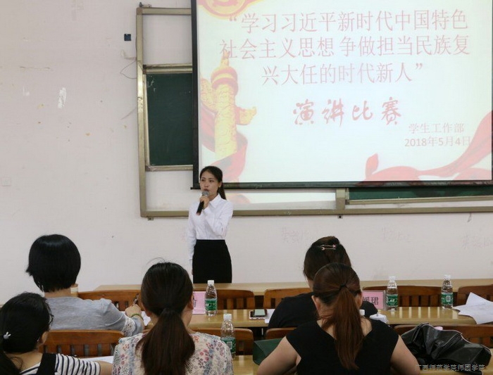 为积极响应自治区高校工委的号召,推进习近平新时代中国特色社会主义思想进教材、进课堂、进师生头脑,5月4日下午,我院“学习习近平新时代中国特色社会主义思想 争做担当民族复兴大任的时代新人”主题演讲比赛在教学楼4-308教室开展。由各系推荐的共15名参赛选手参加了比赛。