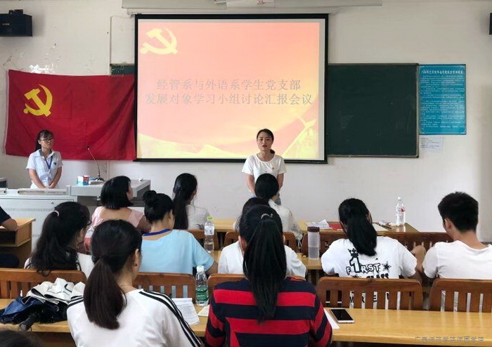 根据学生工作部关于2018年上半年发展对象培训工作的要求,为提升发展对象的政治理论水平,总结培训期间的学习收获,促进两系之间的思想交流,6月22日中午,经管系与外语系学生党支部发展对象学习讨论会在教学楼4-102教室召开。