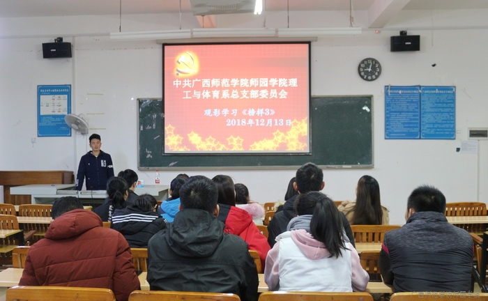 12月13日晚,理工与体育系学生党支部组织全体拟发展入党对象在教学楼3-102教室开展了观影活动。