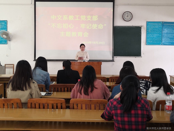 10月29日,中文系教工党支部在教学楼3-302教室召开“不忘初心、牢记使命”主题教育会议。中文系教工党支部全体党员参加会议。