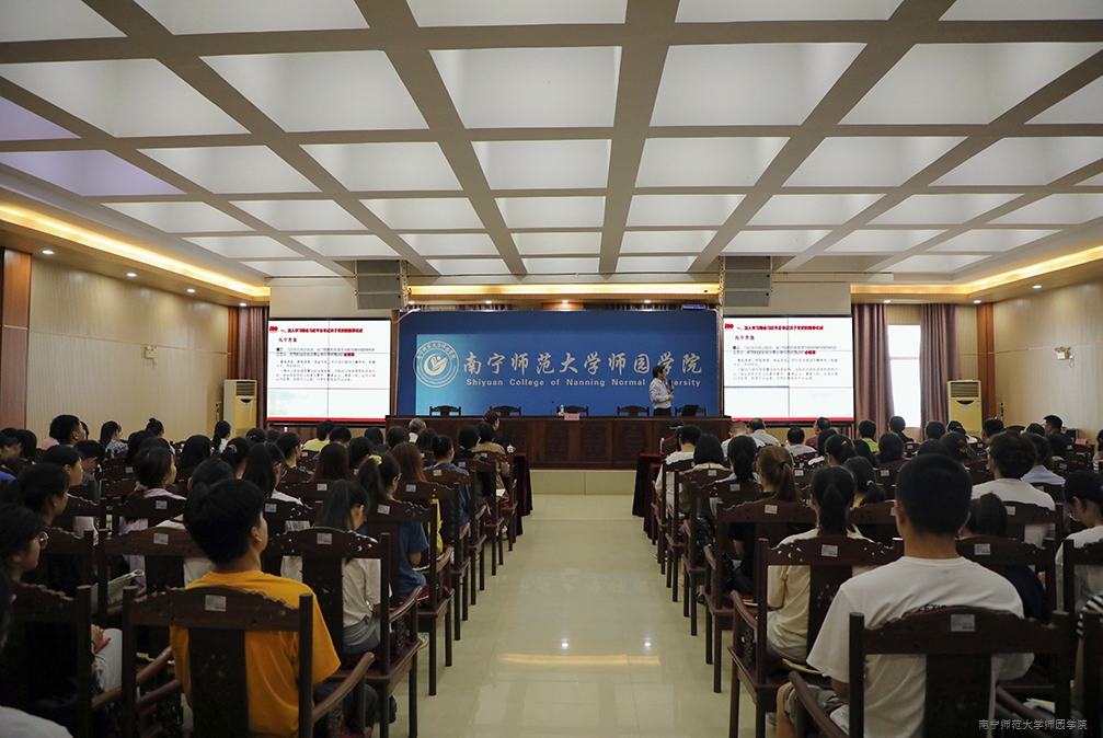 4月21日下午,我院在行政综合楼12楼第二报告厅举行“党史学习教育”专题宣讲报告会,南宁师范大学校长李传起应邀作题为“学好百年党史,汲取智慧力量,为党为国争光”专题宣讲报告。南宁师范大学副校长李兰荣,学院院长李珏,副院长陈积光、庞俊,教学总督导卢敏秋以及全体教职工党员、学生党员代表参加宣讲报告会。宣讲报告会由梁春贤书记主持。