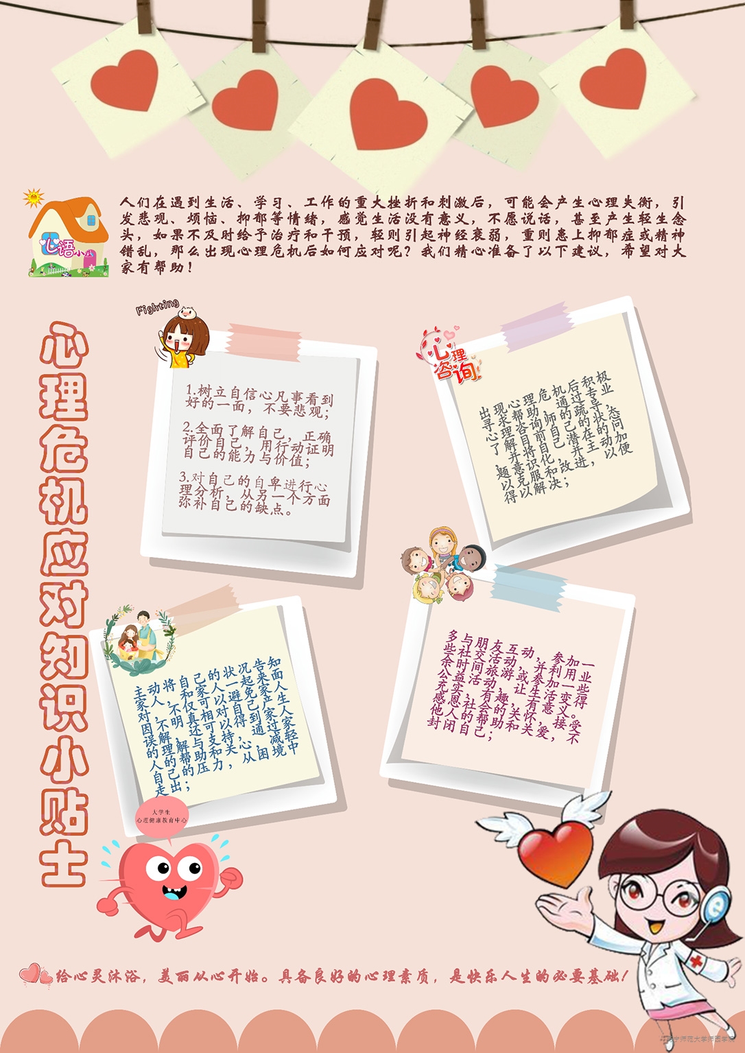 本次心理危机应对图文小贴士大赛的举行,对我院学生普及了心理危机应对知识,同时营造积极向上的校园文化氛围。